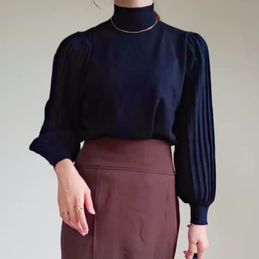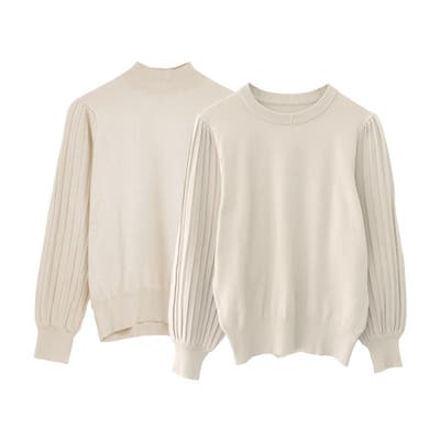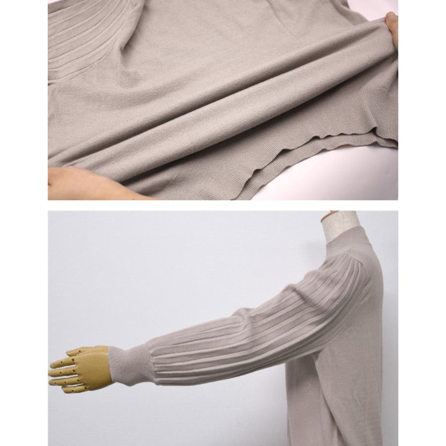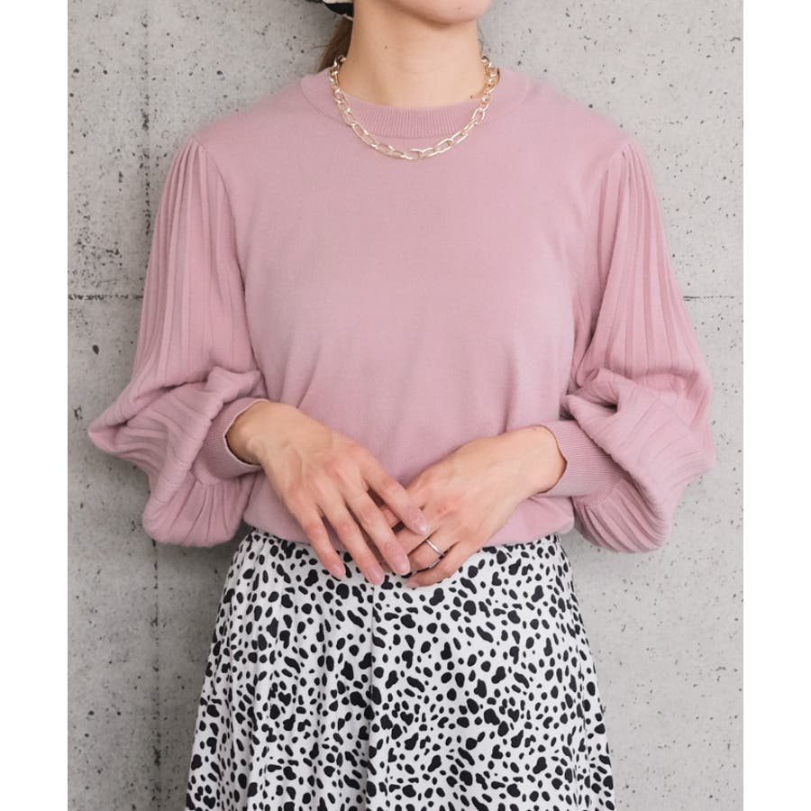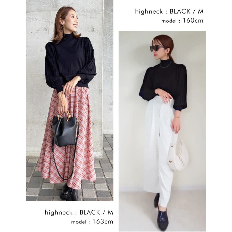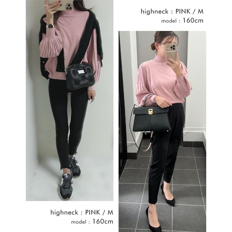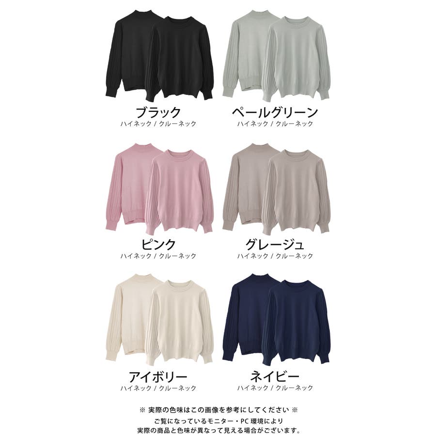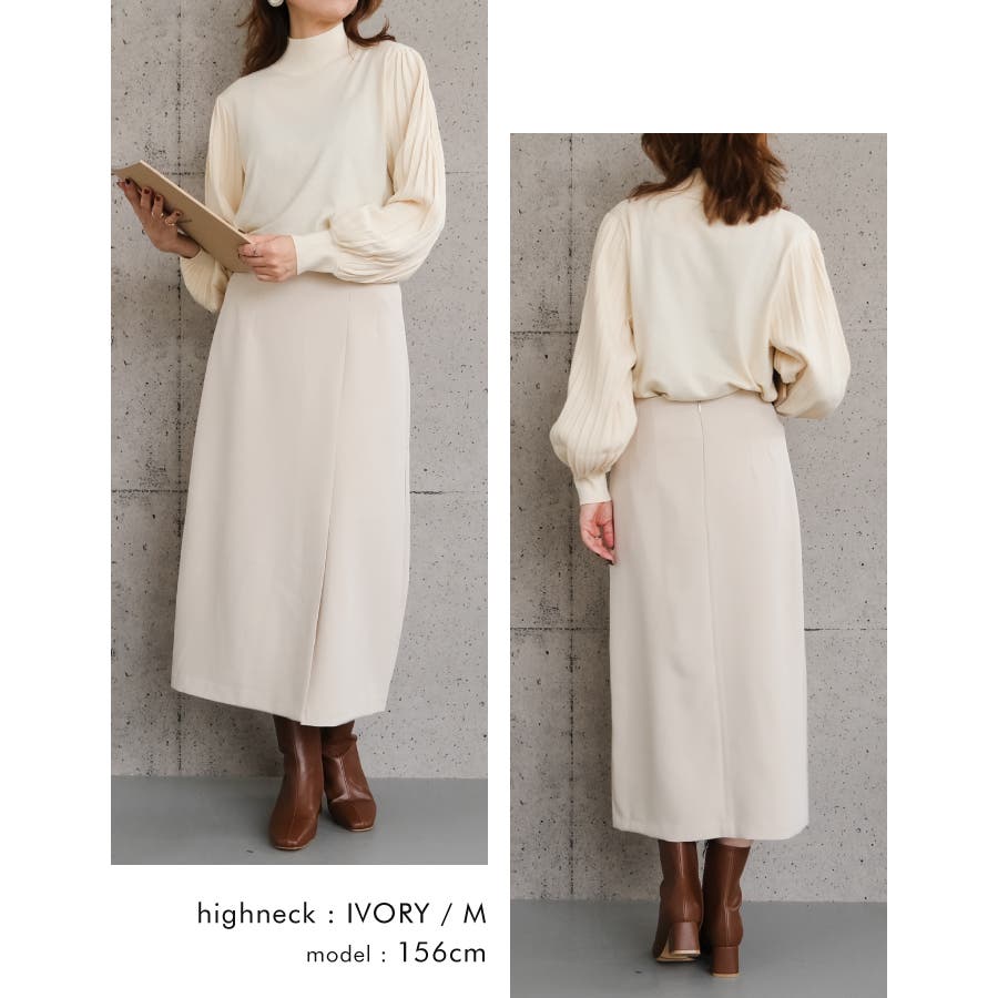 シンプルながら表情豊かに着映える!ハイネックプリーツ袖ニットトップス