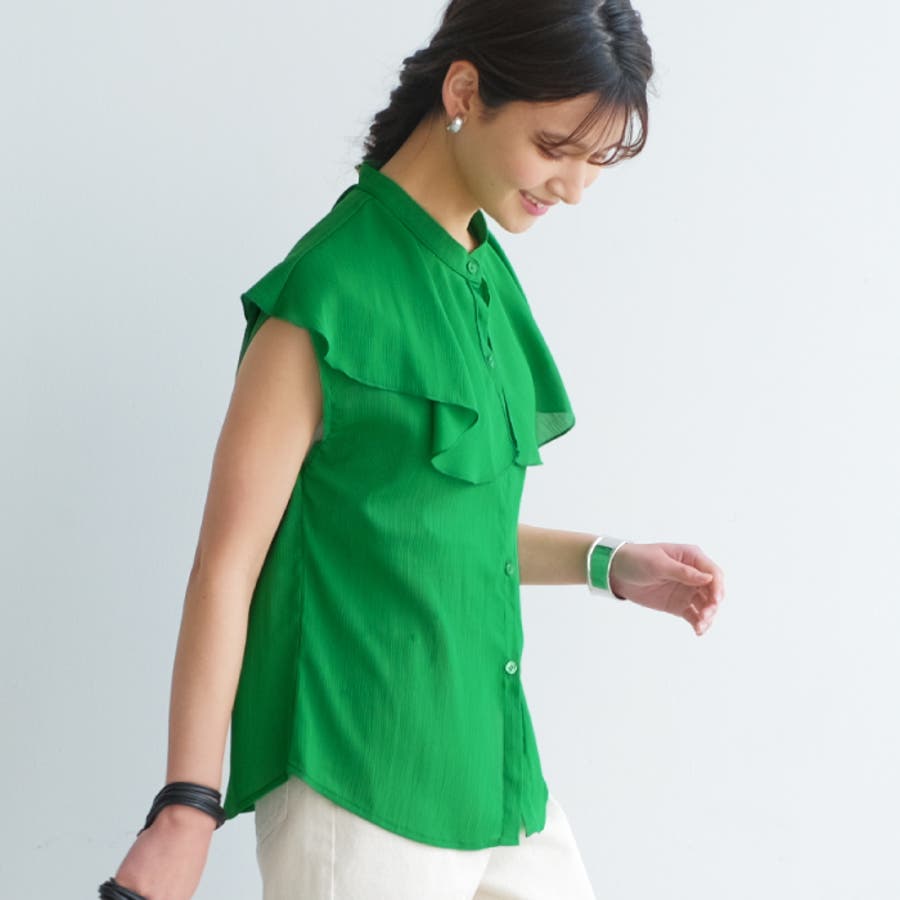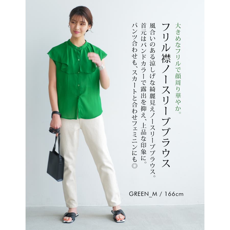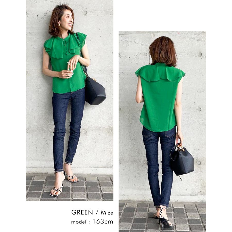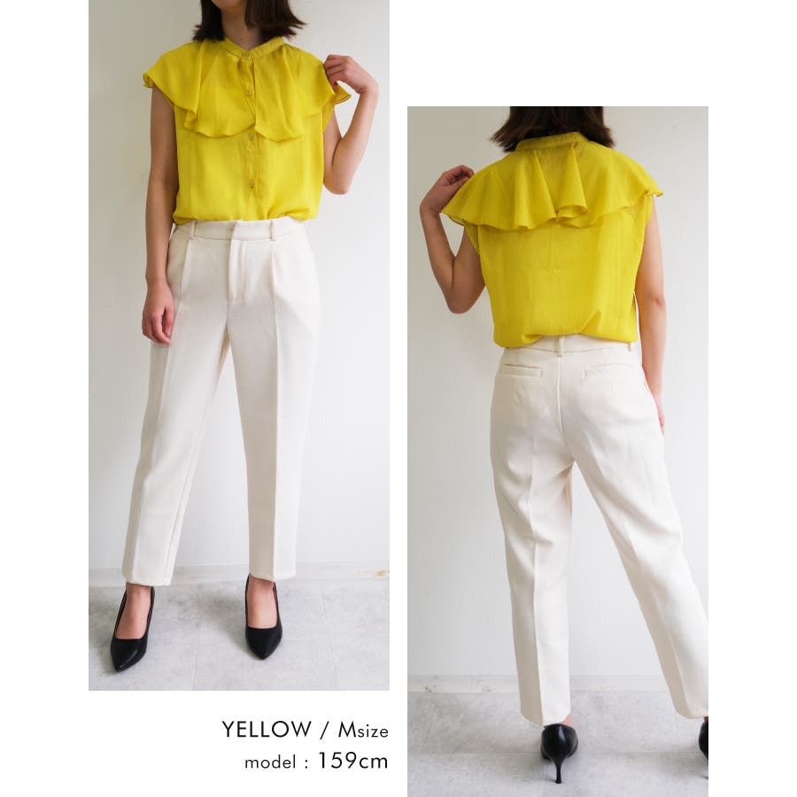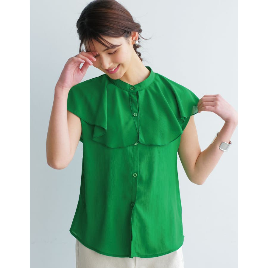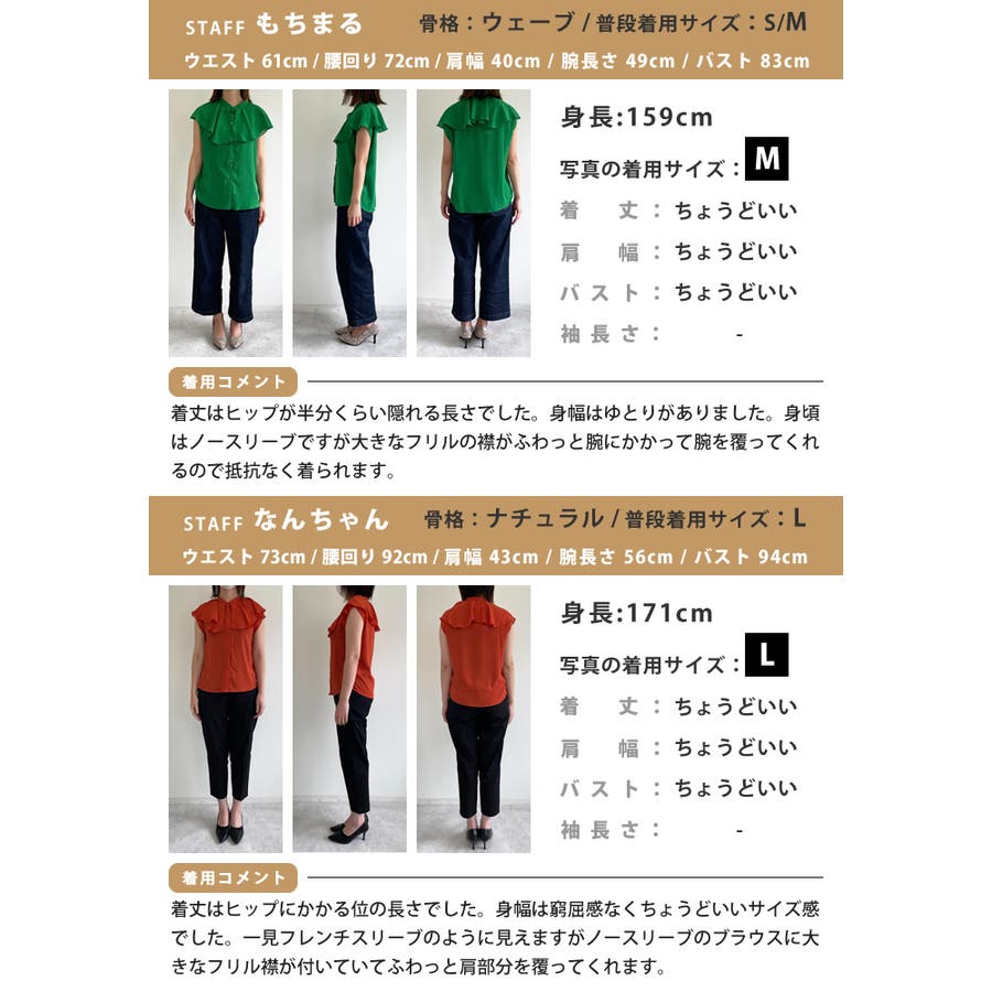 【テラコッタ】大きめなフリルで顔周り華やか。フリル襟ノースリーブブラウス