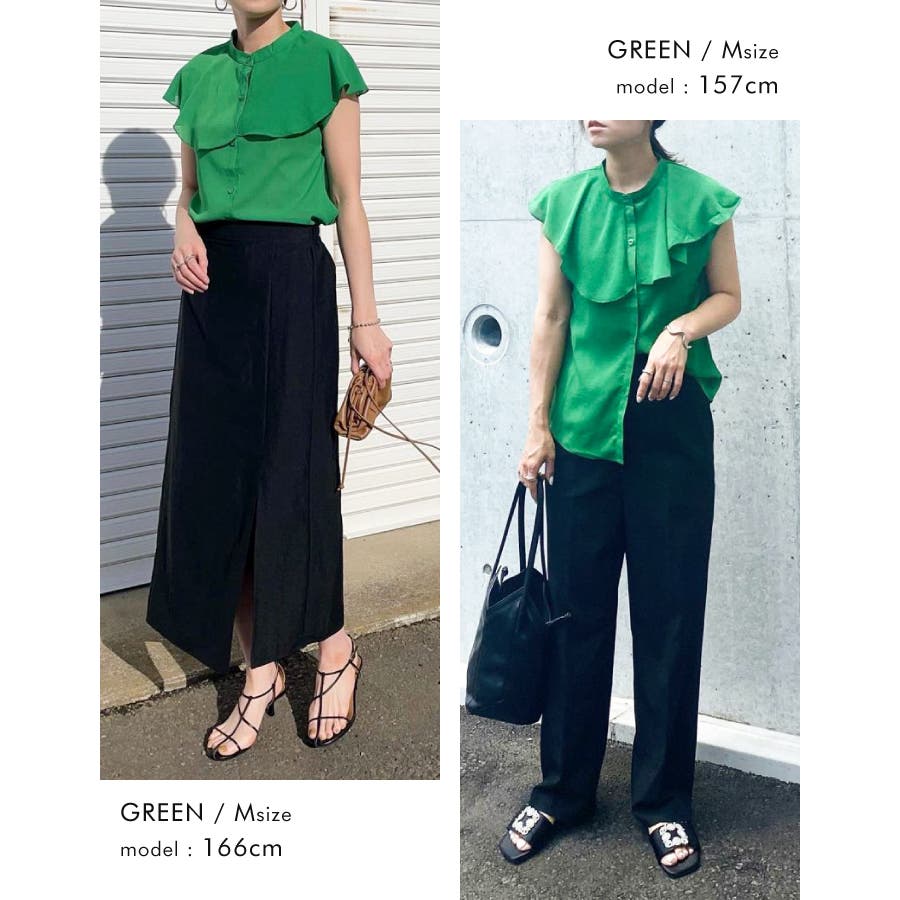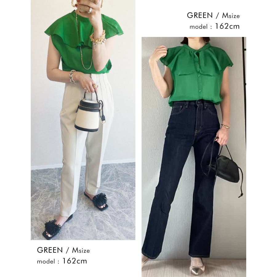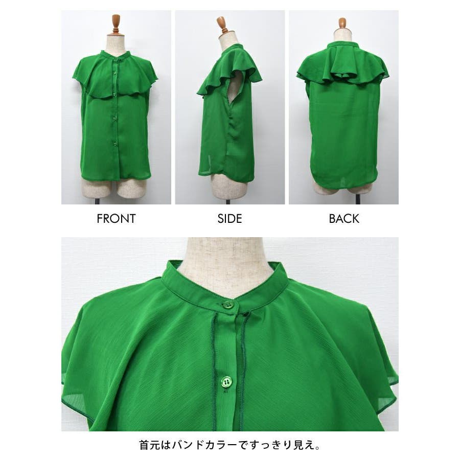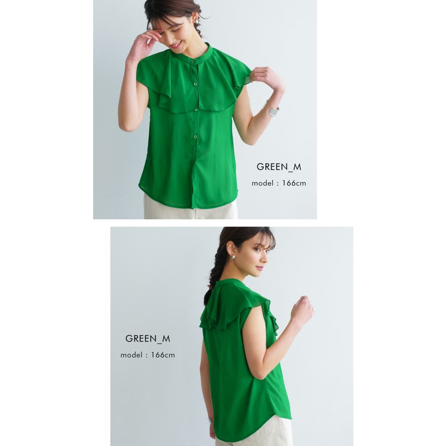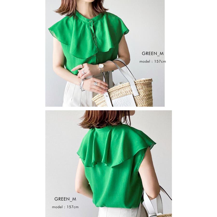 【テラコッタ】大きめなフリルで顔周り華やか。フリル襟ノースリーブブラウス