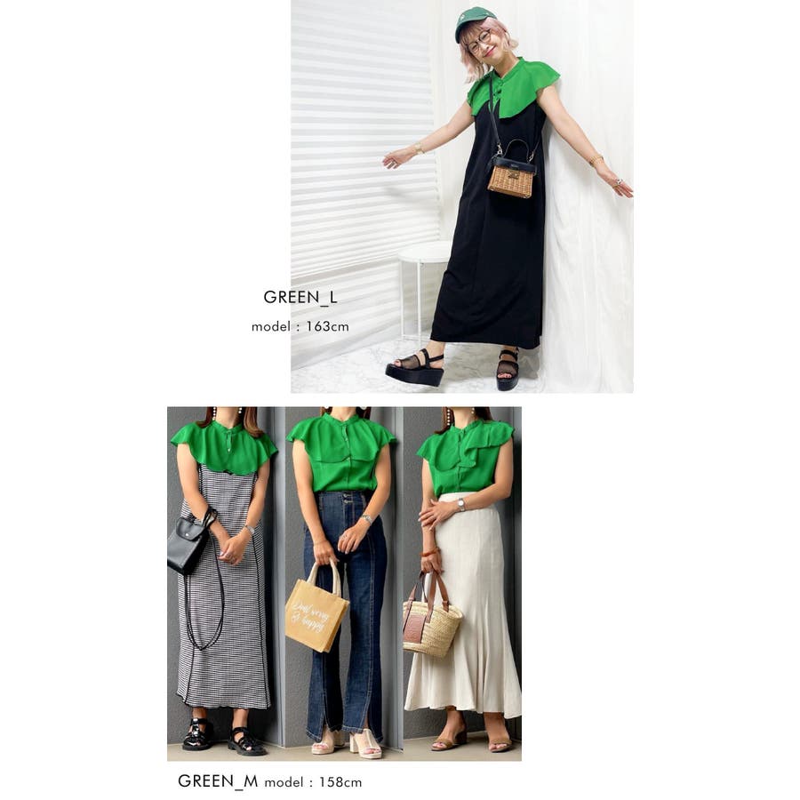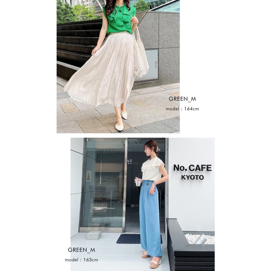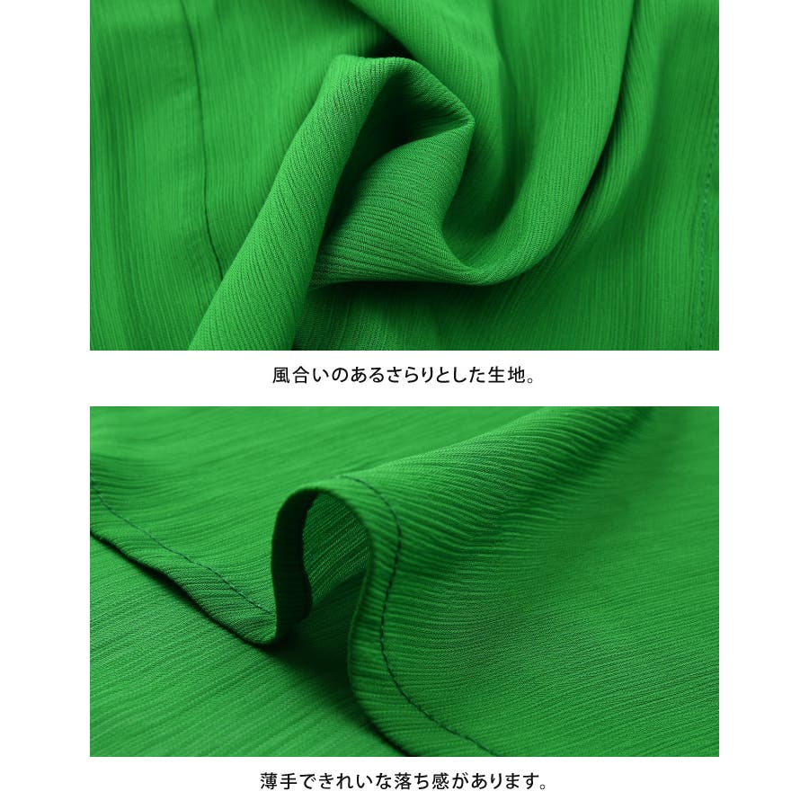 - パッとエレガントになれる!投稿日:2022.08.03さん (40代 / 女性 / 身長155~160cm / 体重55~59kg)購入アイテム:サイズ Lカラー グリーンいつものトップスサイズ:Mサイズ感:ぴったり