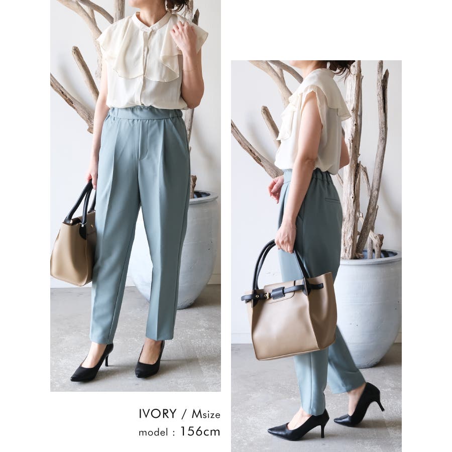 風合いのある涼しげな印象の綺麗見えノースリーブブラウス。