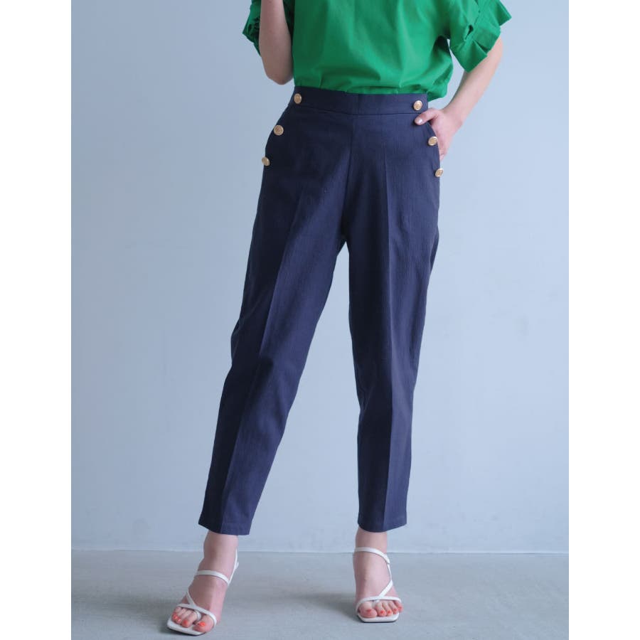 ゴールドボタンがスタイリッシュな雰囲気を演出!フロントボタンストレートパンツ