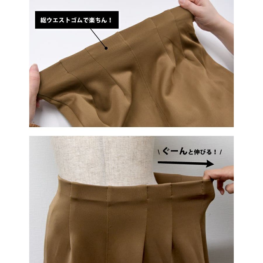 ウエストにゴムが入ってますが、そうとは思わせないデザインで、生地も光沢感があるので高見えします。