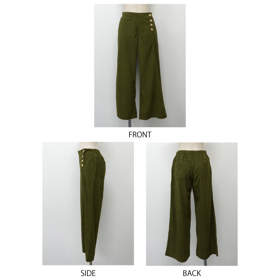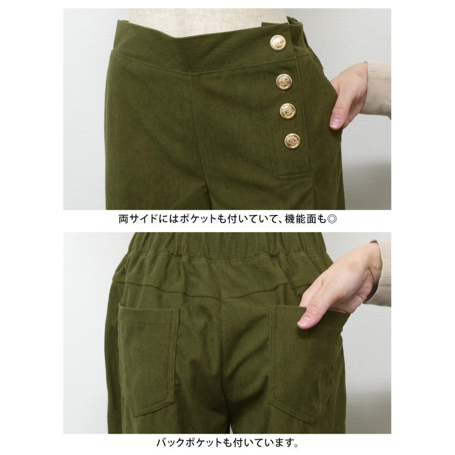 サイドにあしらったボタンがアクセント♪コーデュロイサイドボタンワイドパンツ