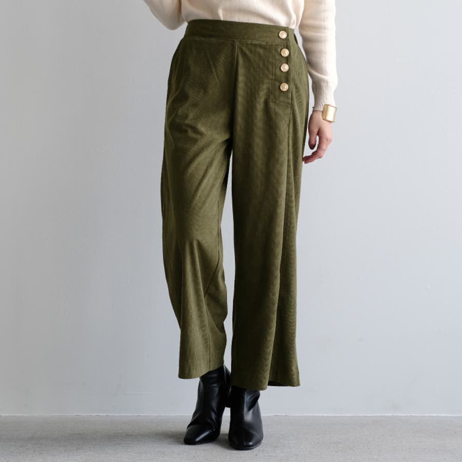 サイドにあしらったボタンがアクセント♪コーデュロイサイドボタンワイドパンツ。