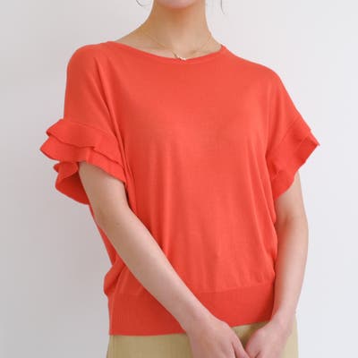 シルエットが女性らしさを引き出す♪袖フリルサマーニットトップス