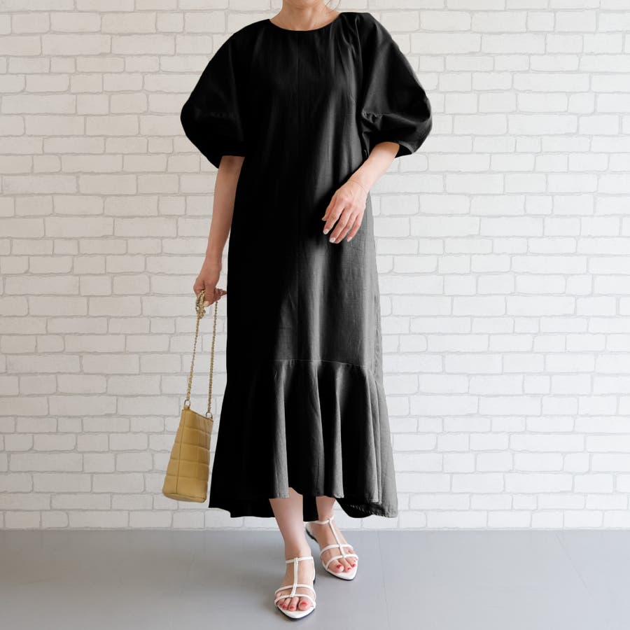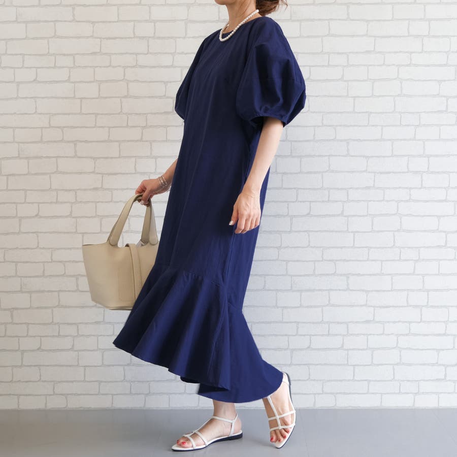女性らしいシルエットで大人可愛いを演出! バルーン袖マーメイドワンピース