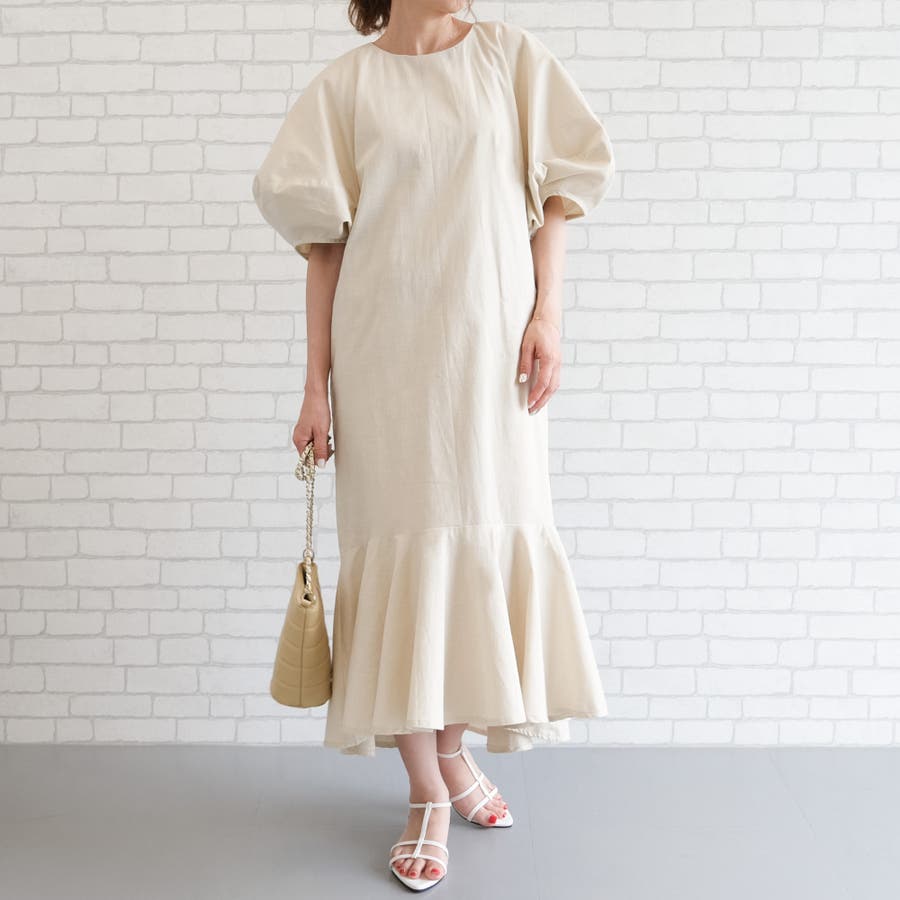 【サンド】女性らしいシルエットで大人可愛いを演出! バルーン袖マーメイドワンピース