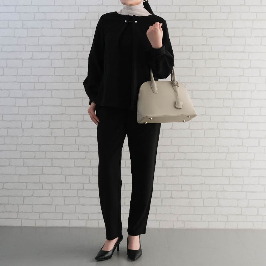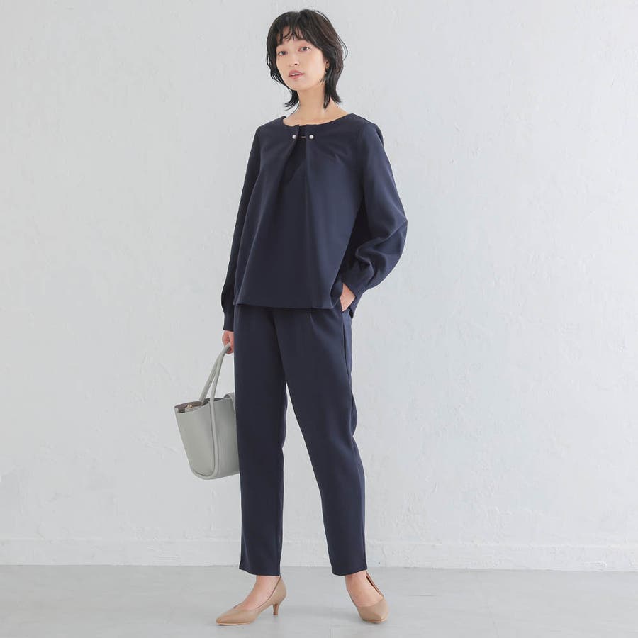 どんなシーンにも着まわせるパール付きブラウスパンツセットアップ