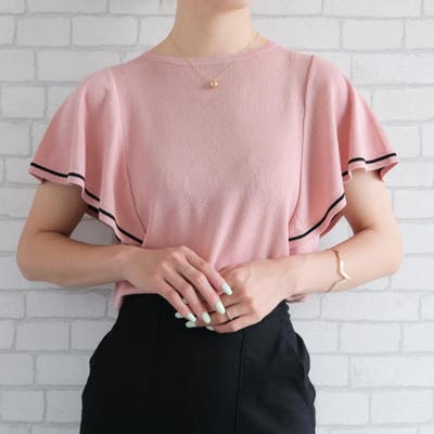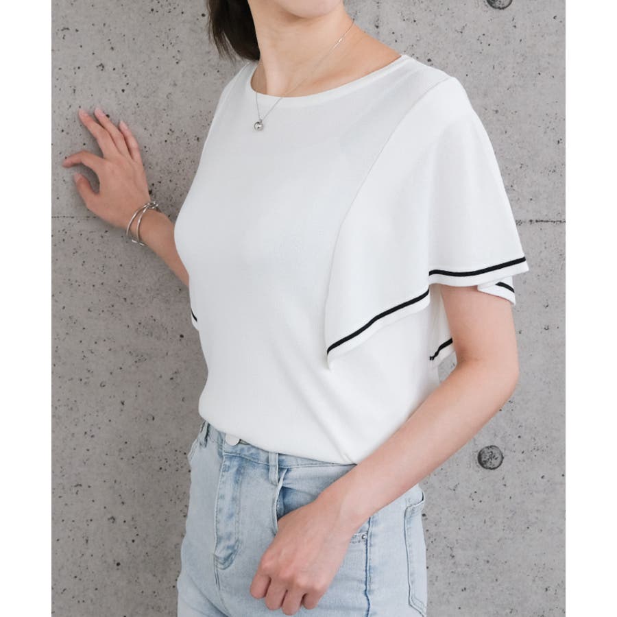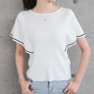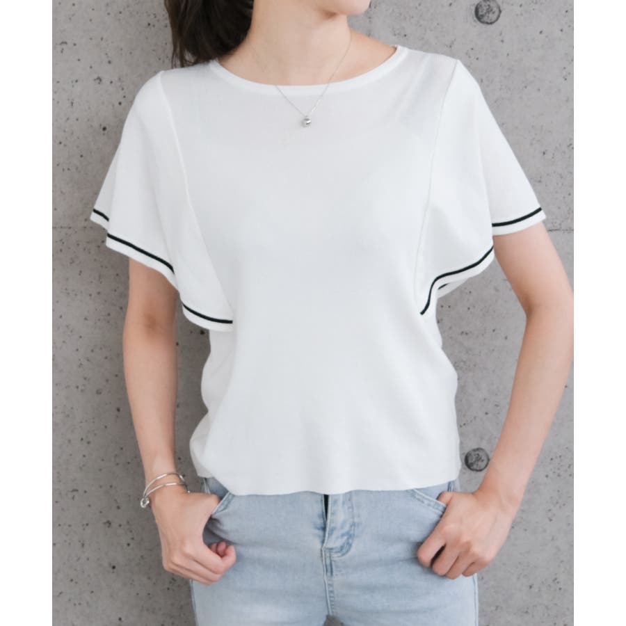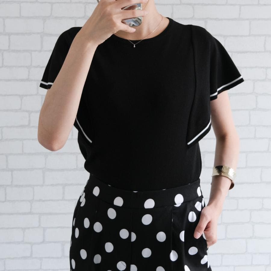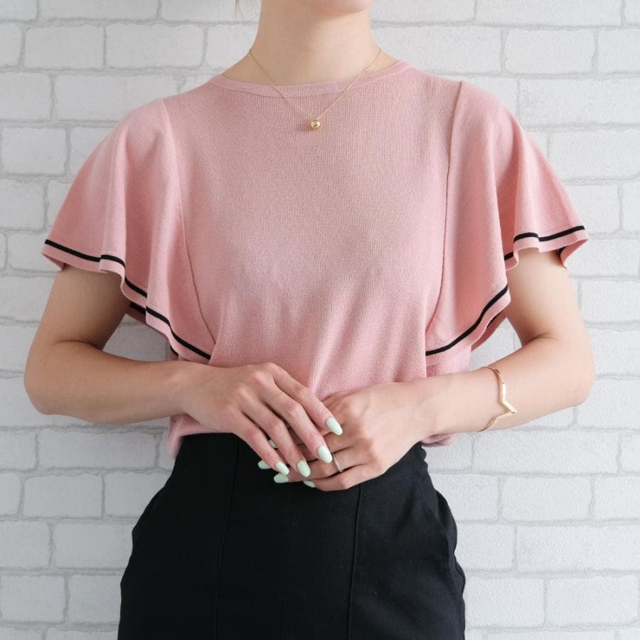 バイカラー配色が大人可愛いフレアスリーブサマーニット