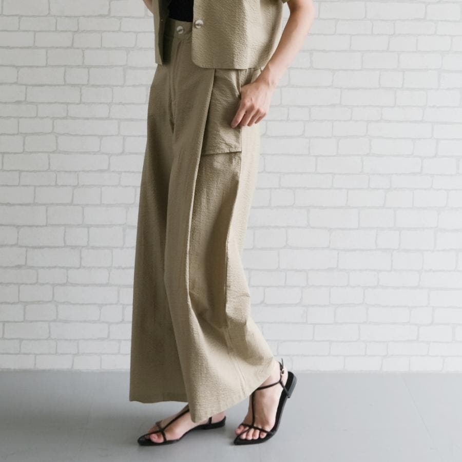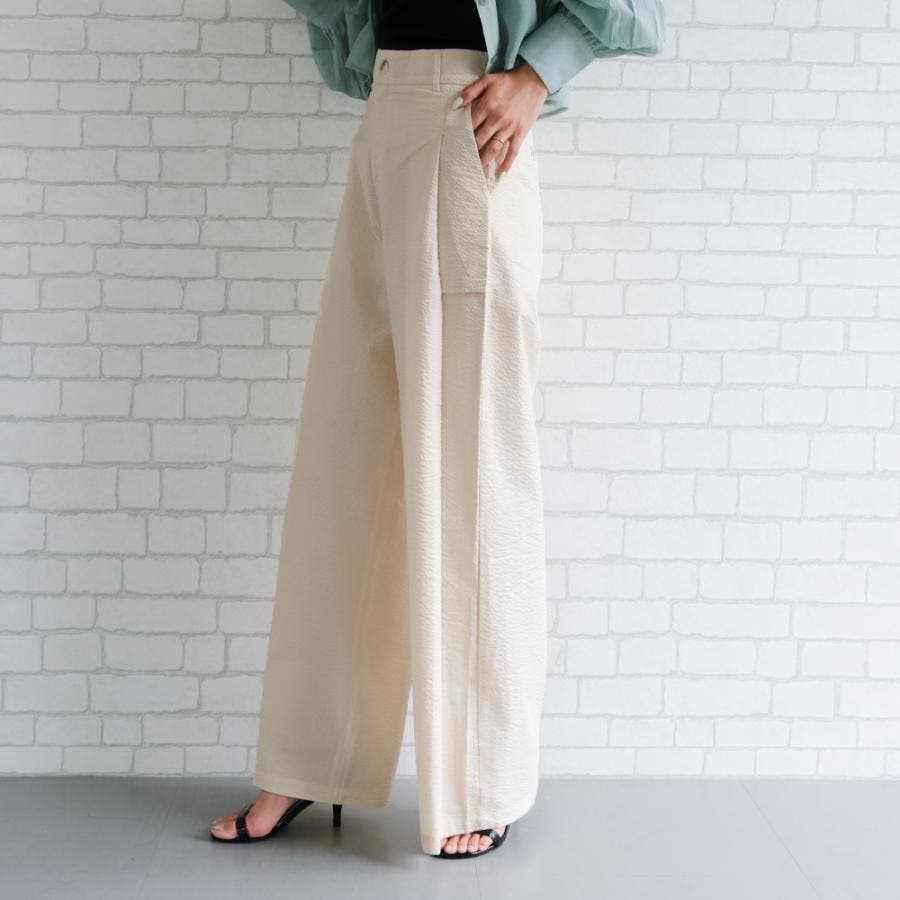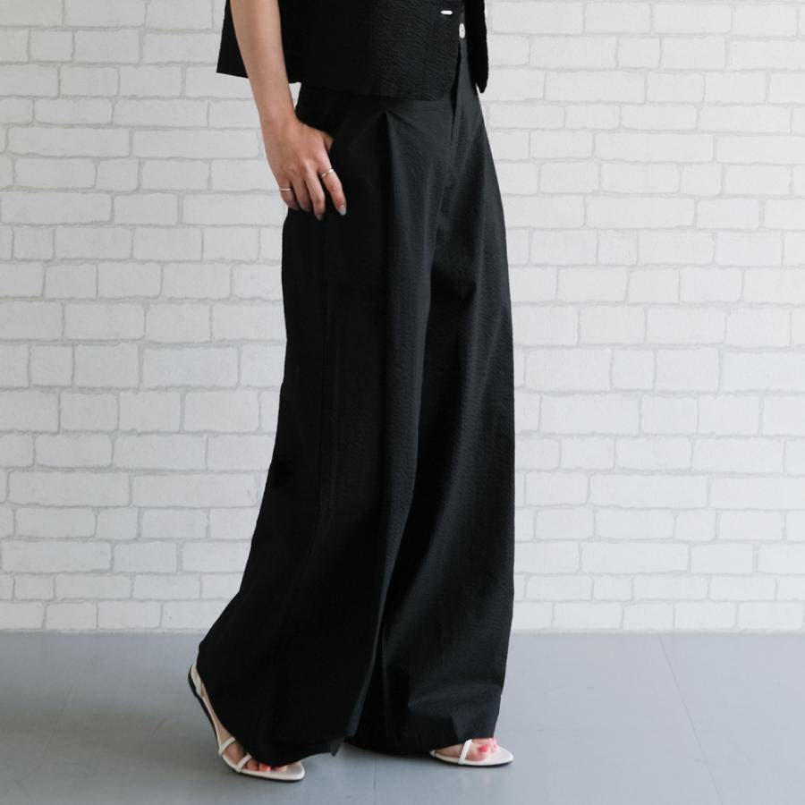 通気性が高く涼やかなサッカー生地ワイドパンツ