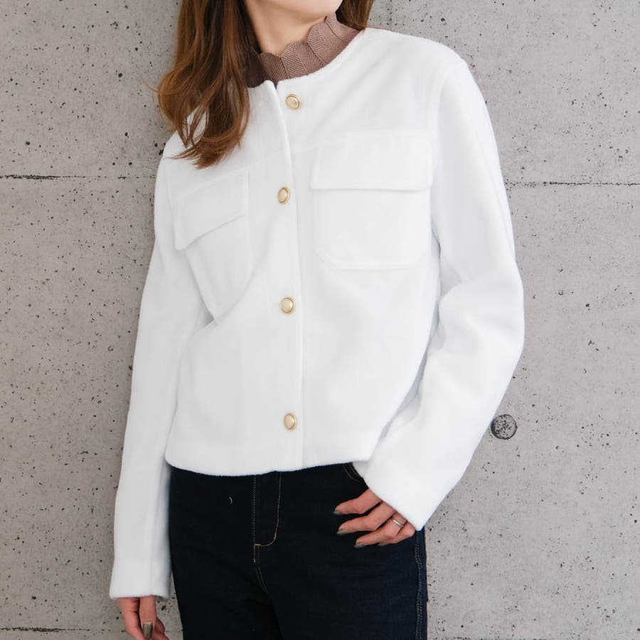 やさしい肌触りで滑らかなタッチのノーカラージャケット
