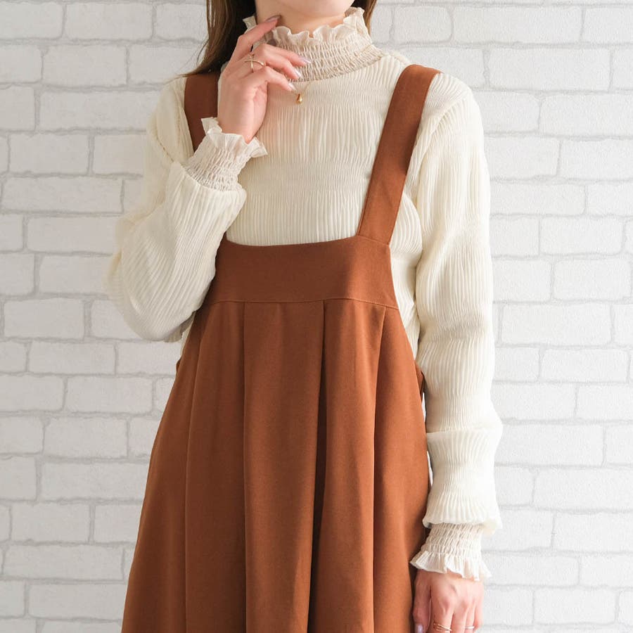 トップスにもインナーでも使える万能裏起毛ハイネックフリルブラウス