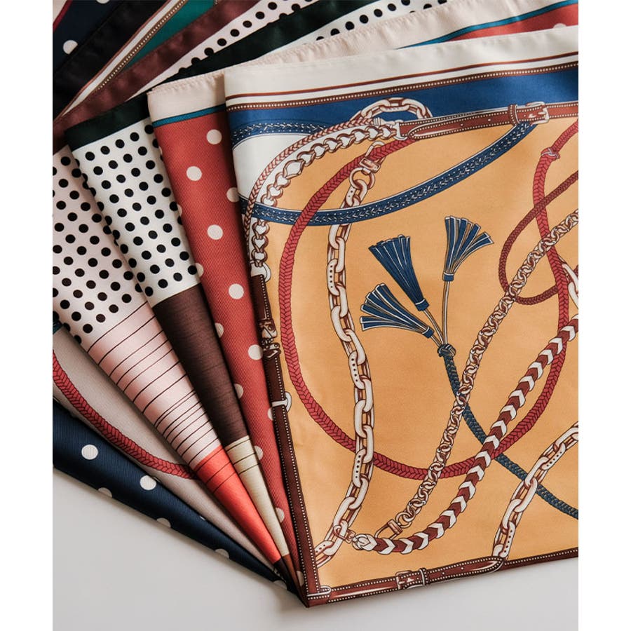 シンプルなコーディネートの仕上げにプラスするだけで、顔まわりを華やかにしてくれるスカーフ。