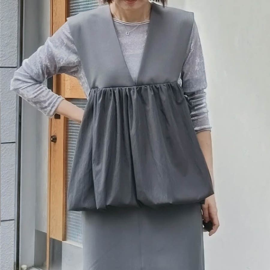 ふんわり丸みを帯びたシルエットが可愛らしい、前後2way仕様のバルーンベスト。