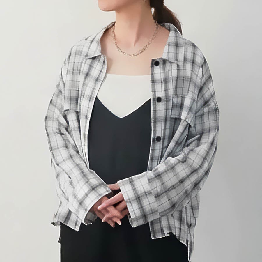このシアーチェックオーバーサイズシャツは、シンプルなインナーと合わせるだけでもこなれた印象に仕上がる万能なアイテムです。