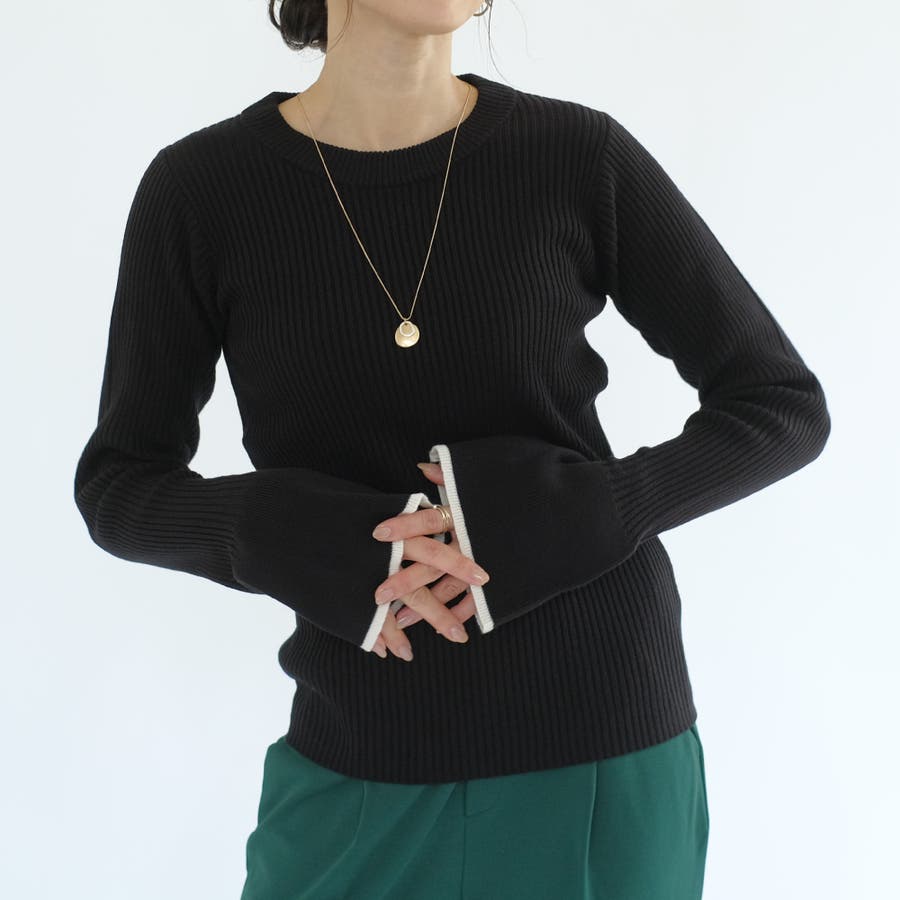 袖口の配色デザインがポイントのリブニット。