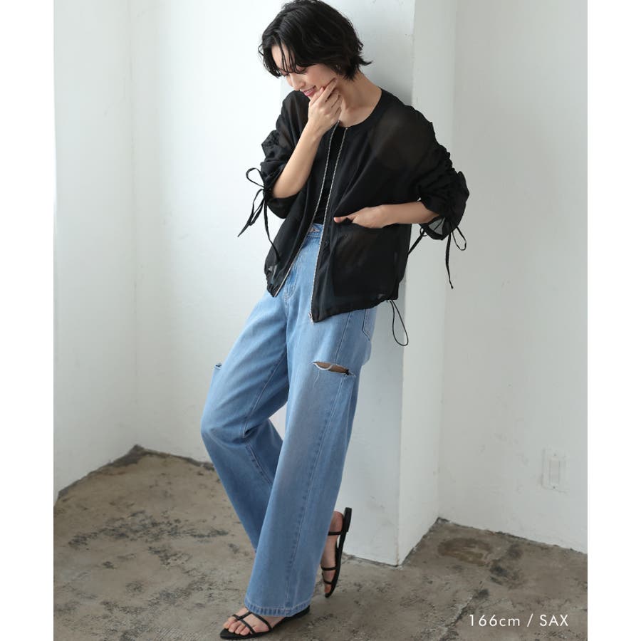 ダメージ加工を施した適度な肌みせで女性らしくヘルシーに着れます。