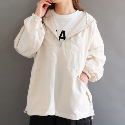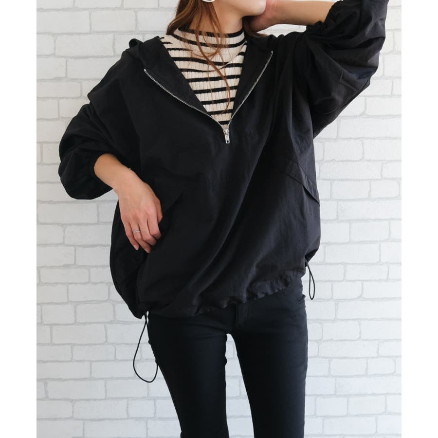 軽快で動きやすく程よいオーバーシルエットのナイロンアノラックパーカー