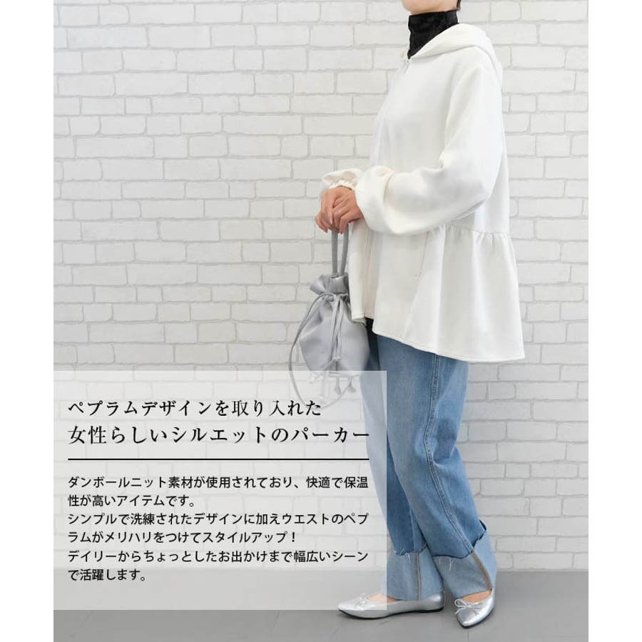 ダンボールニットペプラムパーカー レディース 春 秋 冬 長袖 プルオーバー 無地 カジュアル シンプル 上品 清楚 きれいめ フェミニン テレワーク リモートワーク コンパクト スエット スウェット カーディガン 高見え ママ 羽織 カーデ ポンチカーデ ポンチ ペプラムカーデ 着回し