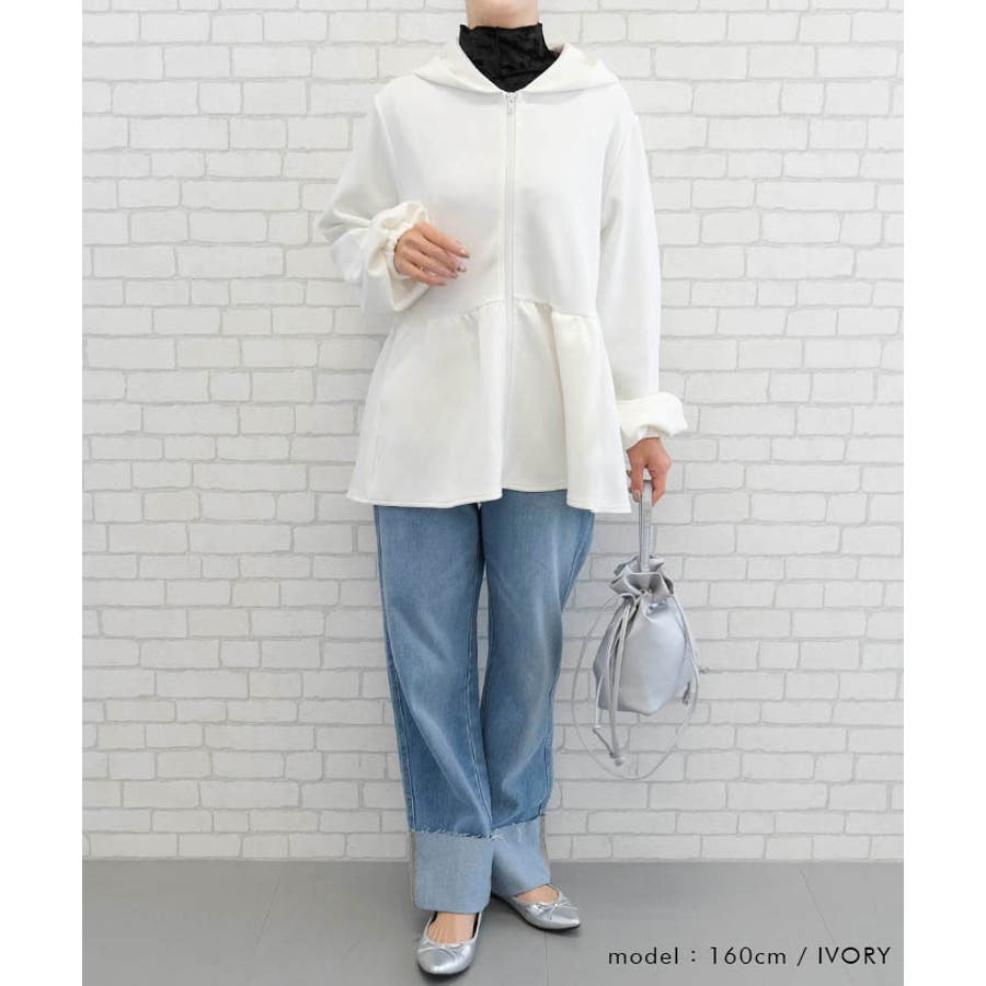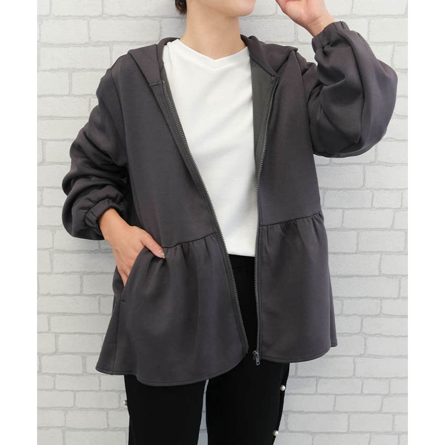 ペプラムデザインを取り入れた女性らしいシルエットのパーカー♪