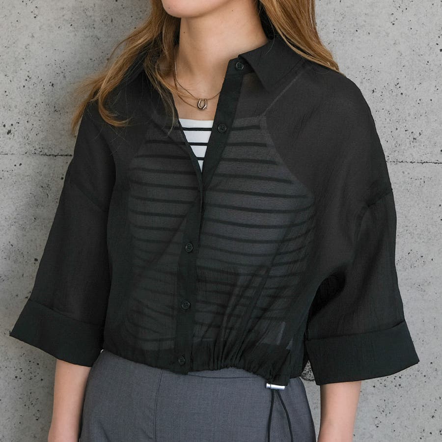 裾ドロストワイドスリーブシアーシャツ レディース 春 秋 冬