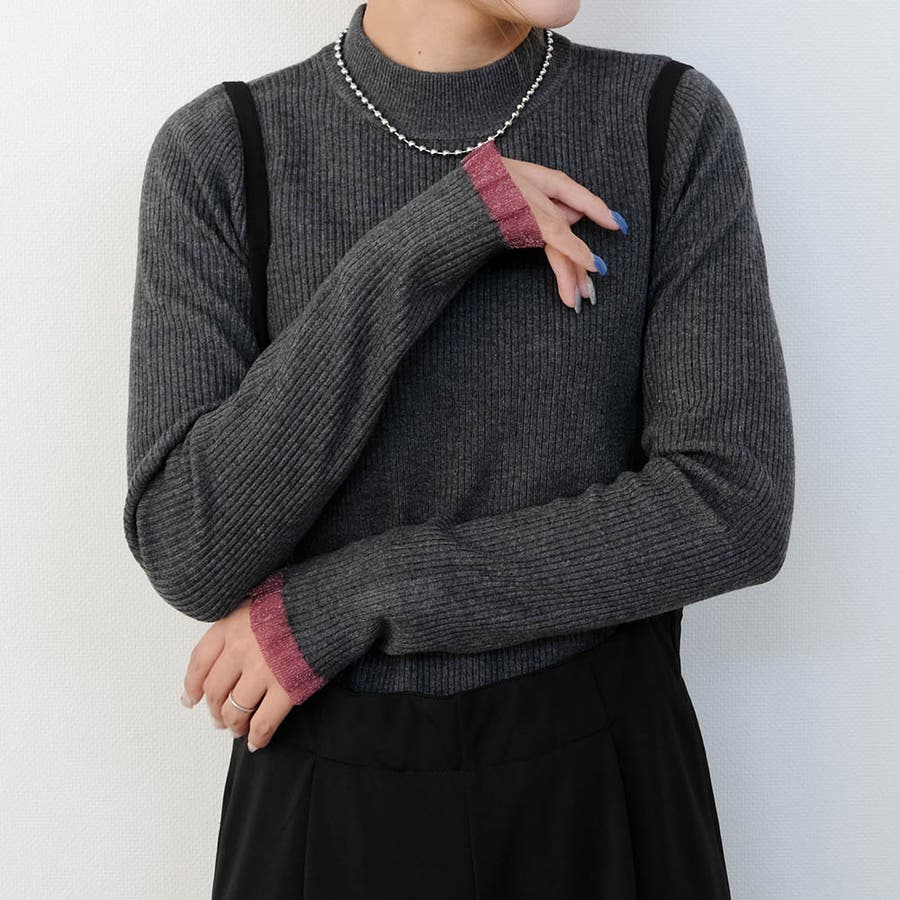 袖先シアーハイゲージニットトップス ニット レディース 春 秋 冬 M 長袖 リブ リブニット ハイネック プチハイネック モックネック 無地 ガーリー フェミニン カジュアル シンプル セーター ベーシック コンパクト 華奢魅せ きれいめ 細身 タイト