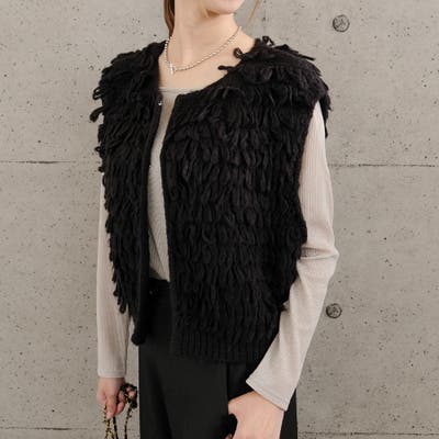 程よく身体に寄り添うシルエットが女性らしさを引き立てつつ、ラメの繊細な輝きが華やぎをプラス。
