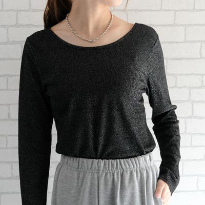 ほんのりきらめくラメがあしらわれた、上品さと華やかさを兼ね備えたカットソー。