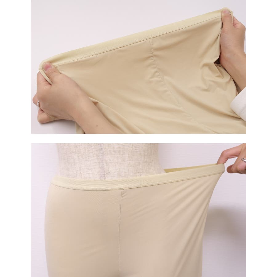 ボトムの裾がトイレの床につくのを避ける為に生まれたペチパンツ。 裾にゴムが入っているので、一緒に折り返して固定しておけます。透け、張り付きも防いで、静電気防止もしてくれる優秀アイテムです!
