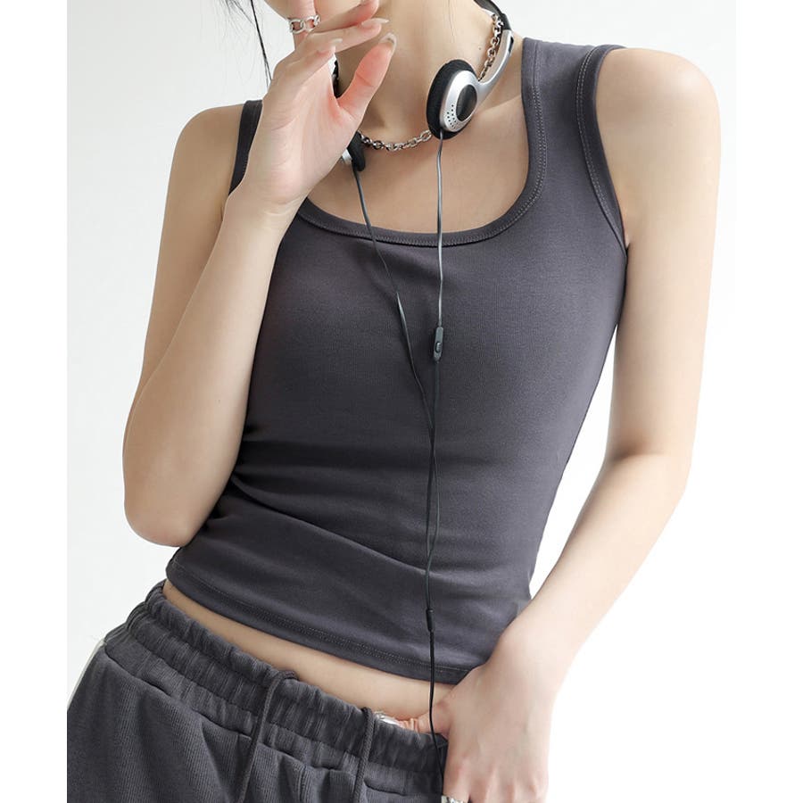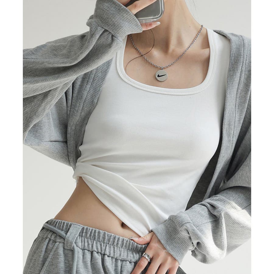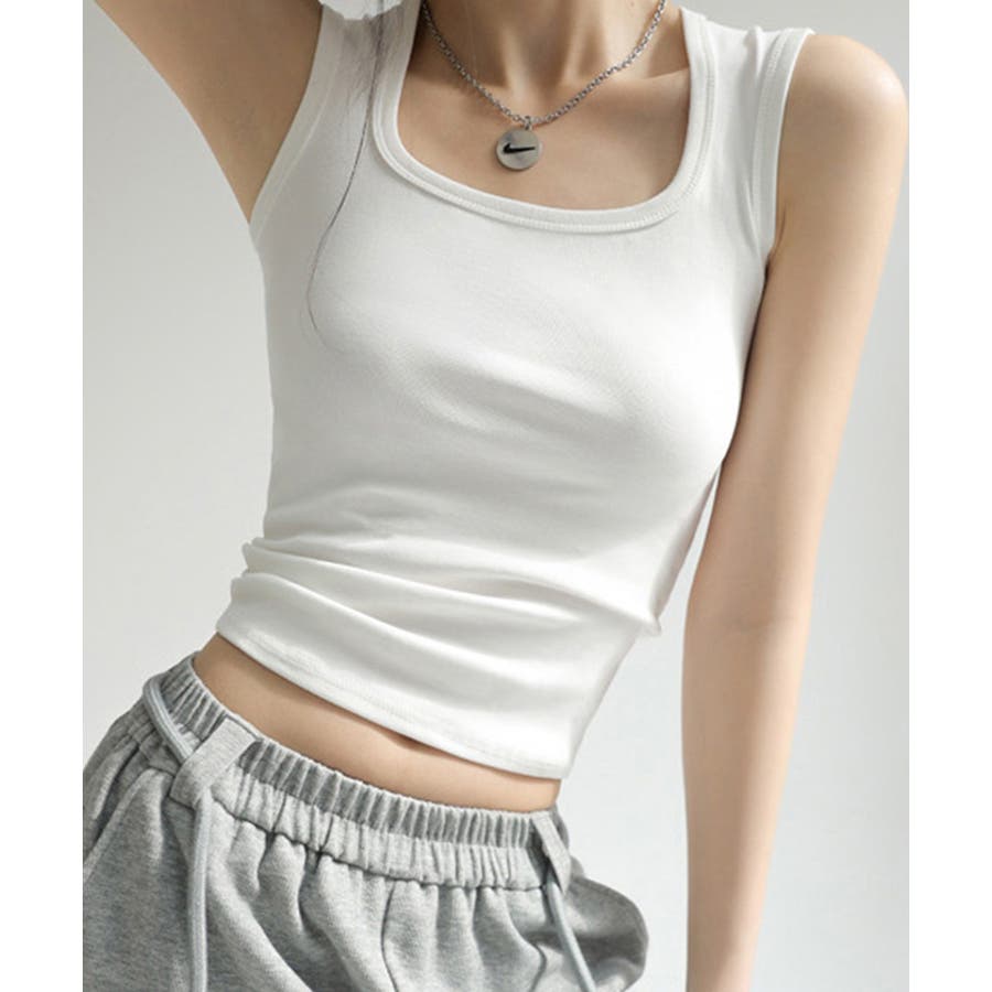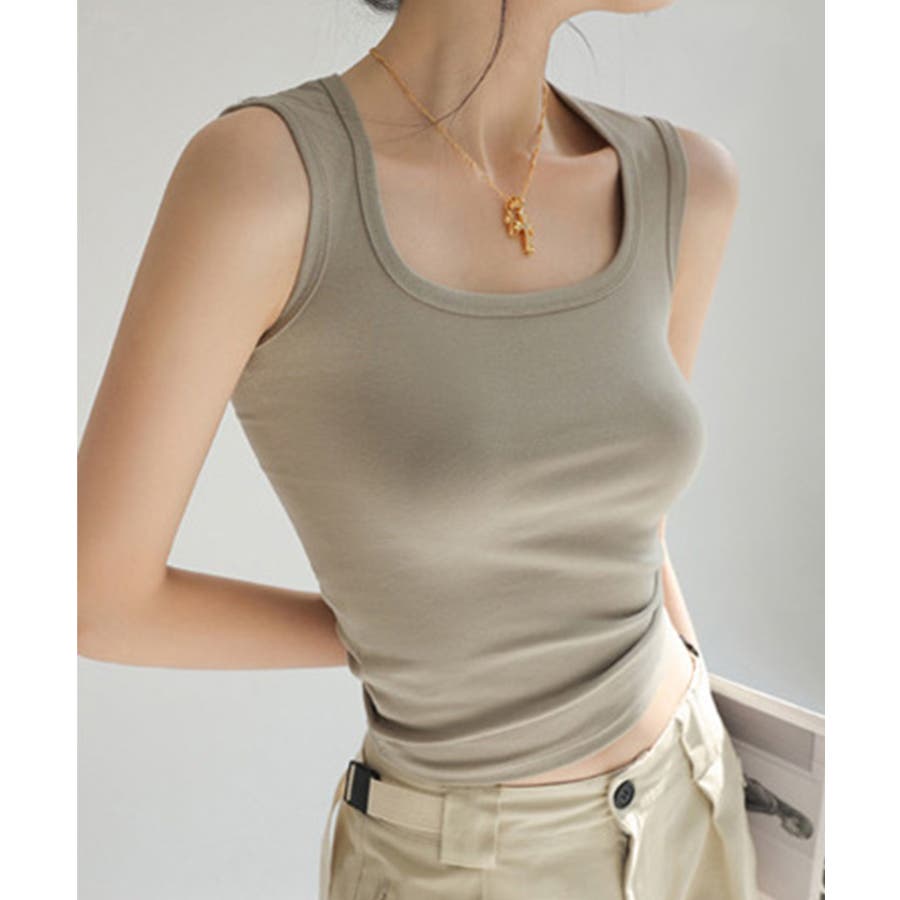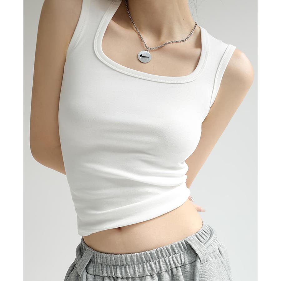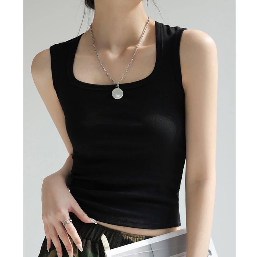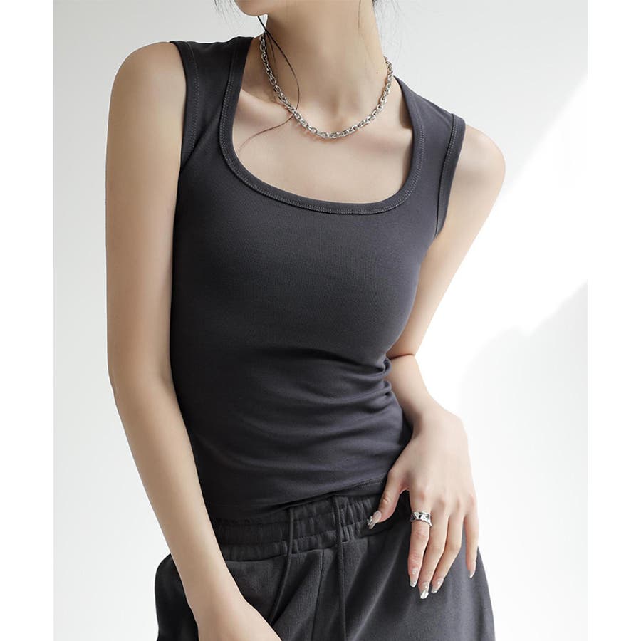 スクエアカットリブニットタンクトップ 春 夏 秋