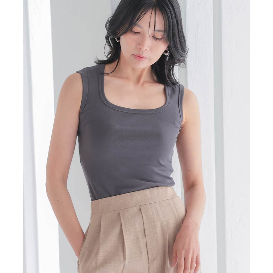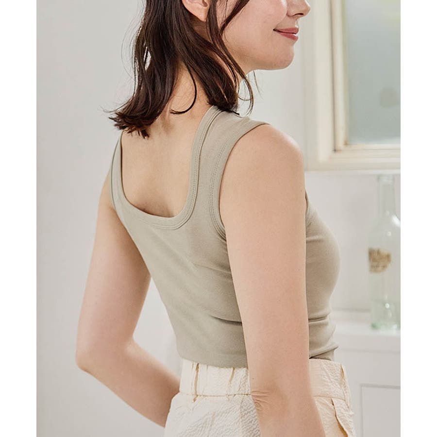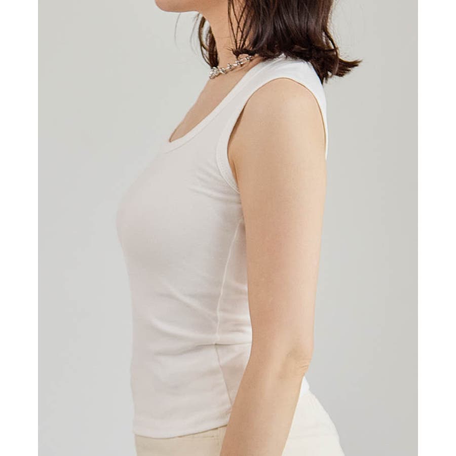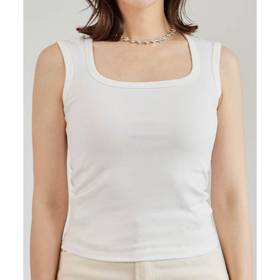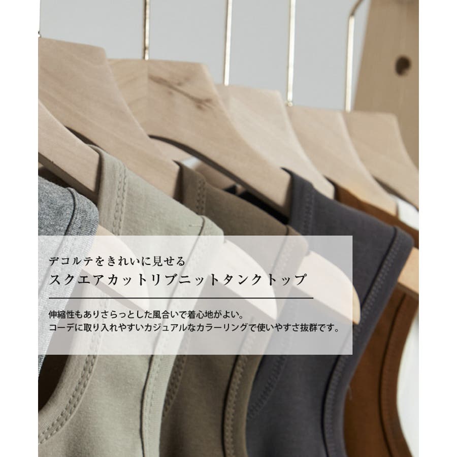 スクエアカットリブニットタンクトップ 春 夏 秋 冬 M L リブ タンクトップ レディース スクエアネック ノースリーブ タンク トップ かわいい 可愛い オシャレ おしゃれ フライスコットンタンクトップ リブタンクトップ レイヤード
