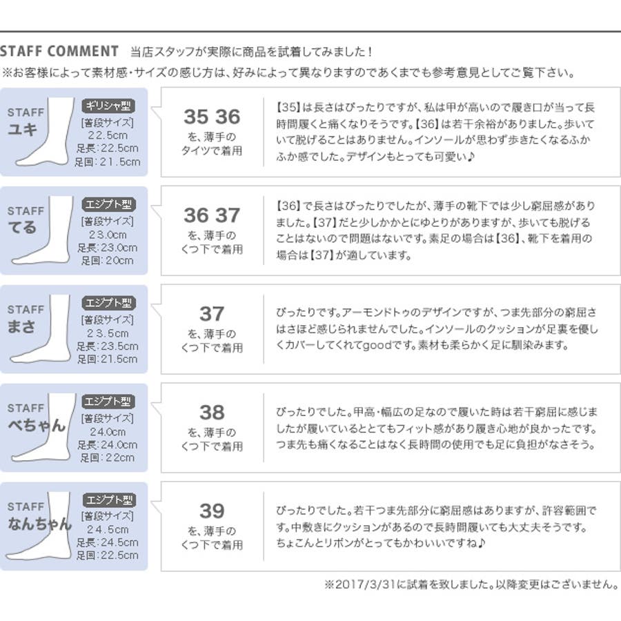 - 春っぽくてかわいい!投稿日:2021.04.19さん (30代 / 女性 )購入アイテム:サイズ 【39】(24.5cm)カラー アイボリー足のサイズ:24.5cmサイズ感:ぴったり