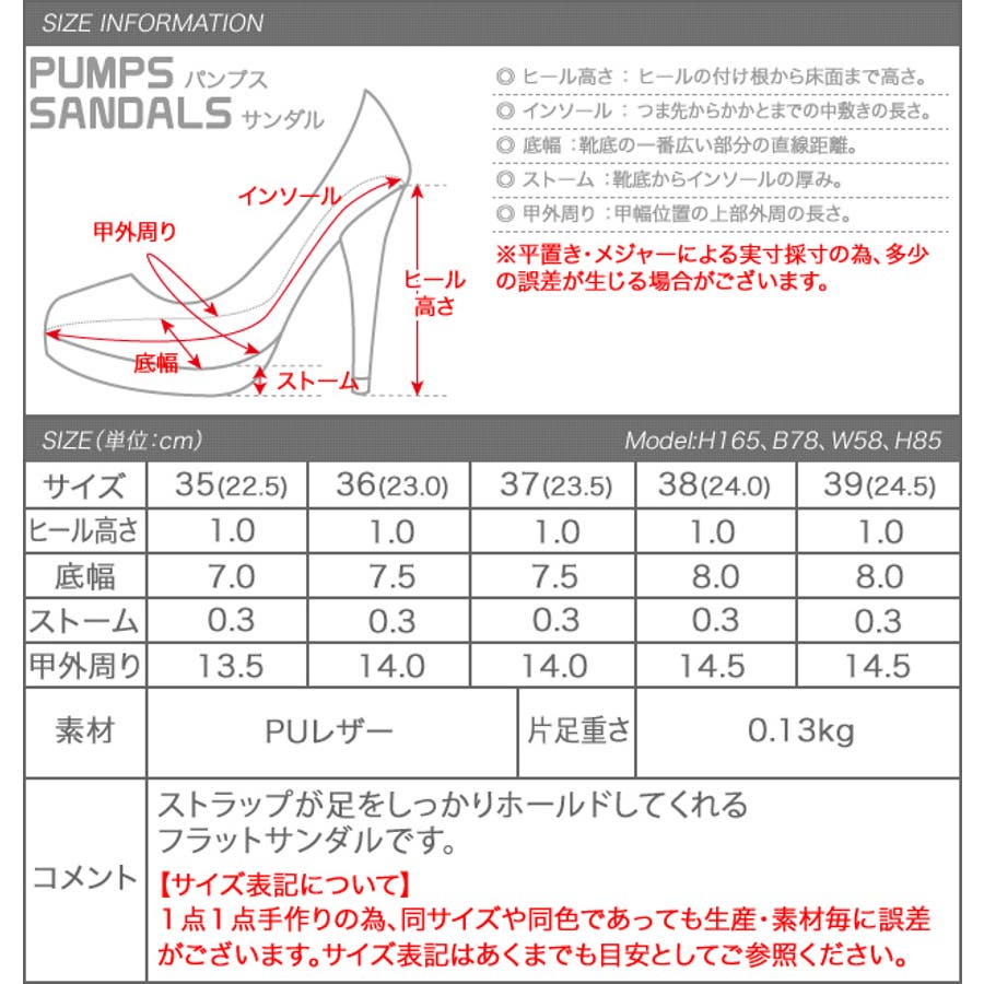 | サイズ | 【35】(22.5cm) / 【36】(23.0cm) / 【37】(23.5cm) / 【38】(24.0cm) / 【39】(24.5cm) |