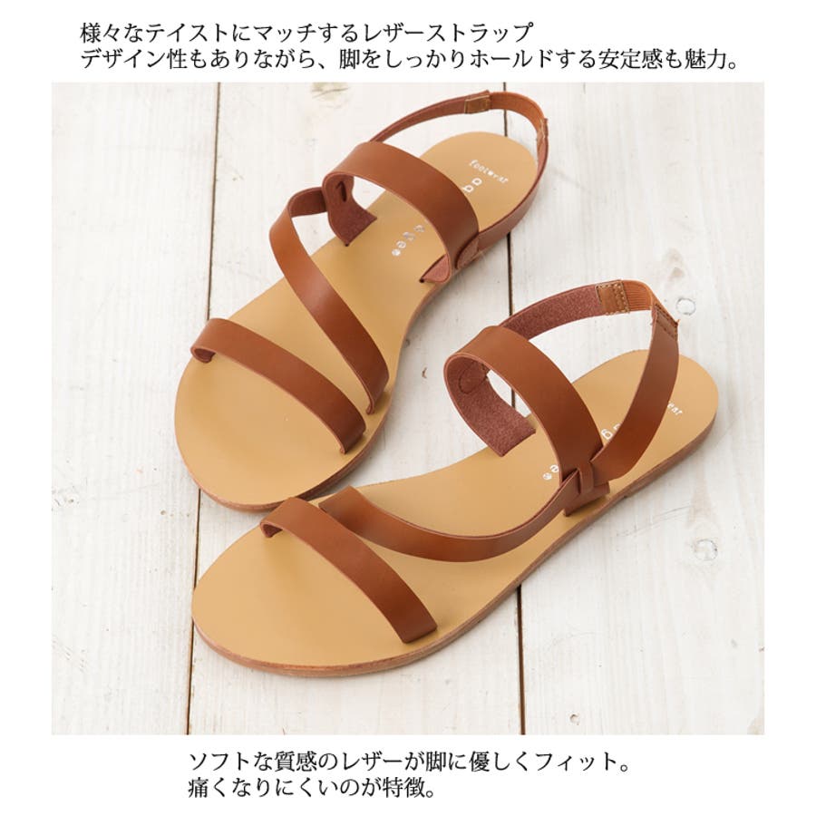 足の裏が触れる部分は凹凸もなく、履き心地はよくありません。レザーストラップもペラッペラで微妙です。