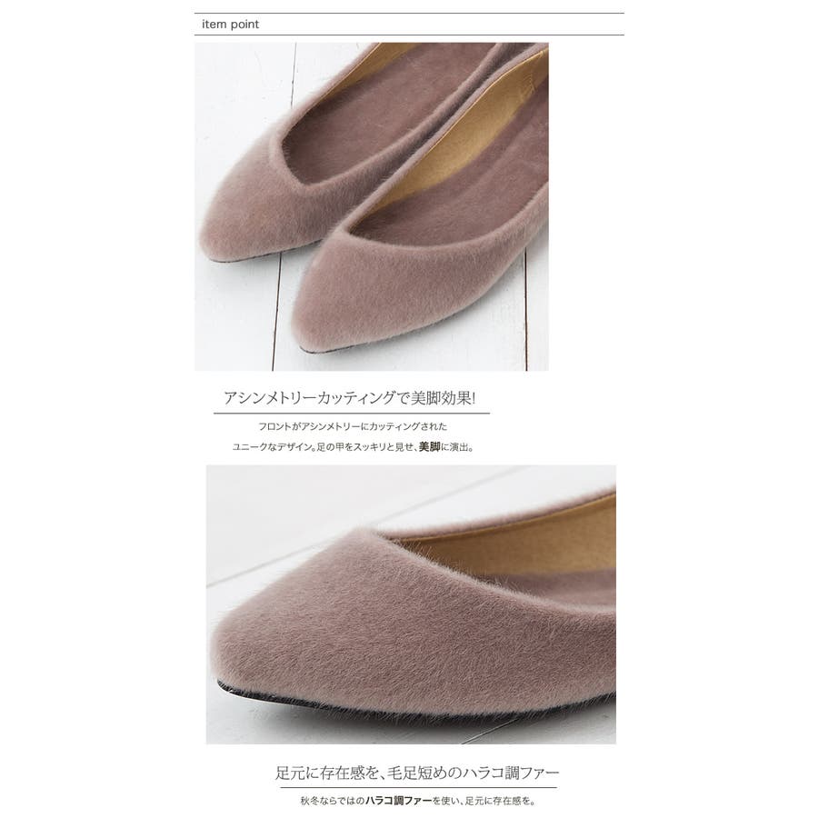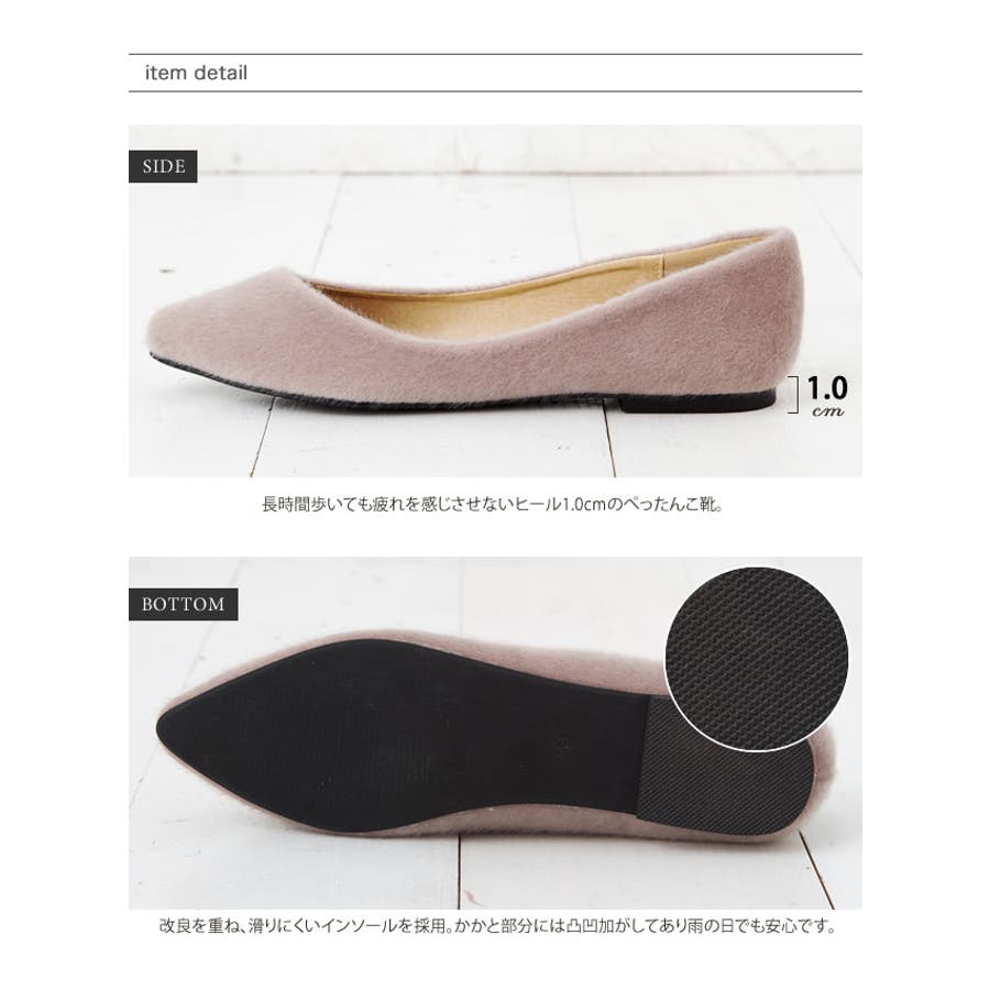 程よく尖った足先とアシンメトリーなVがスタリッシュで素敵です。