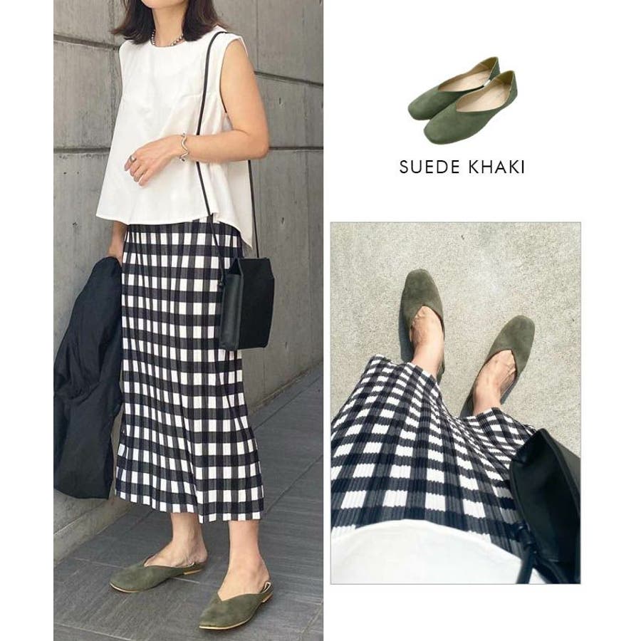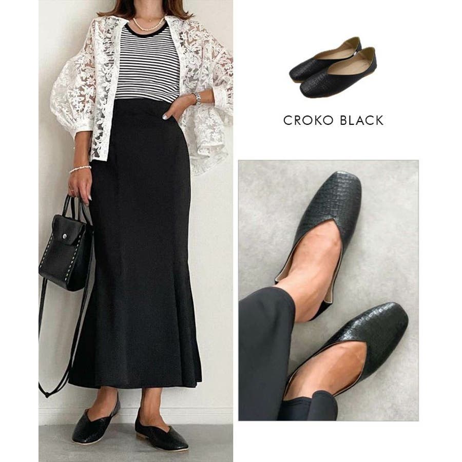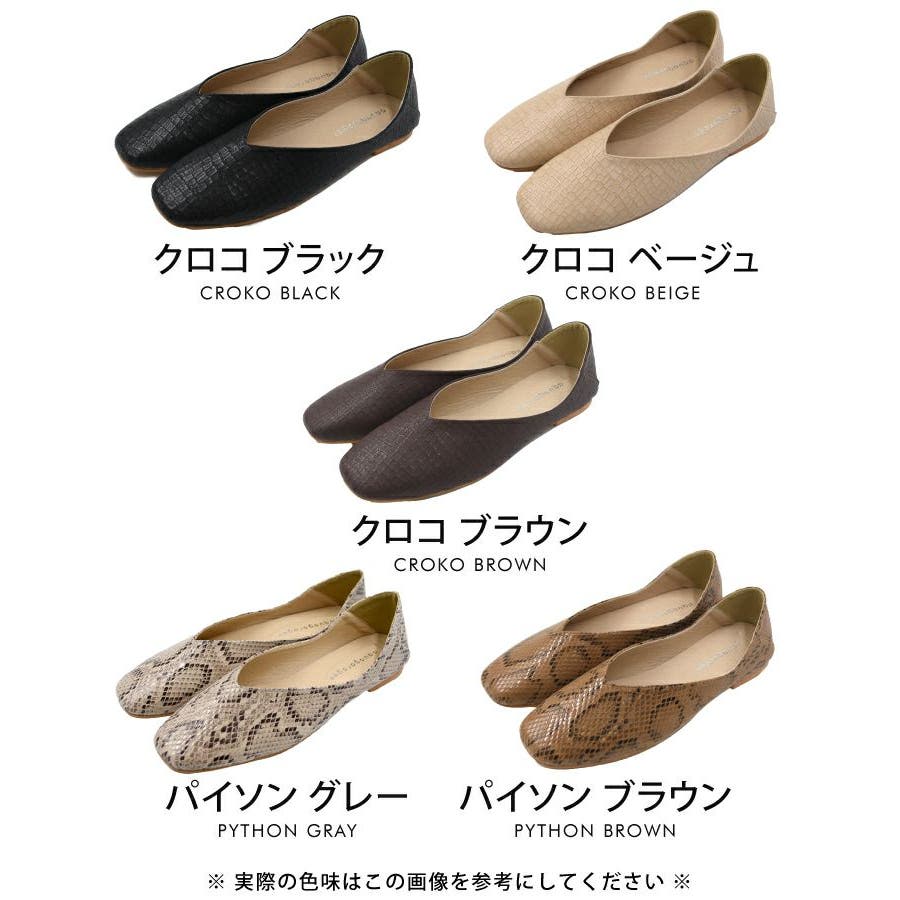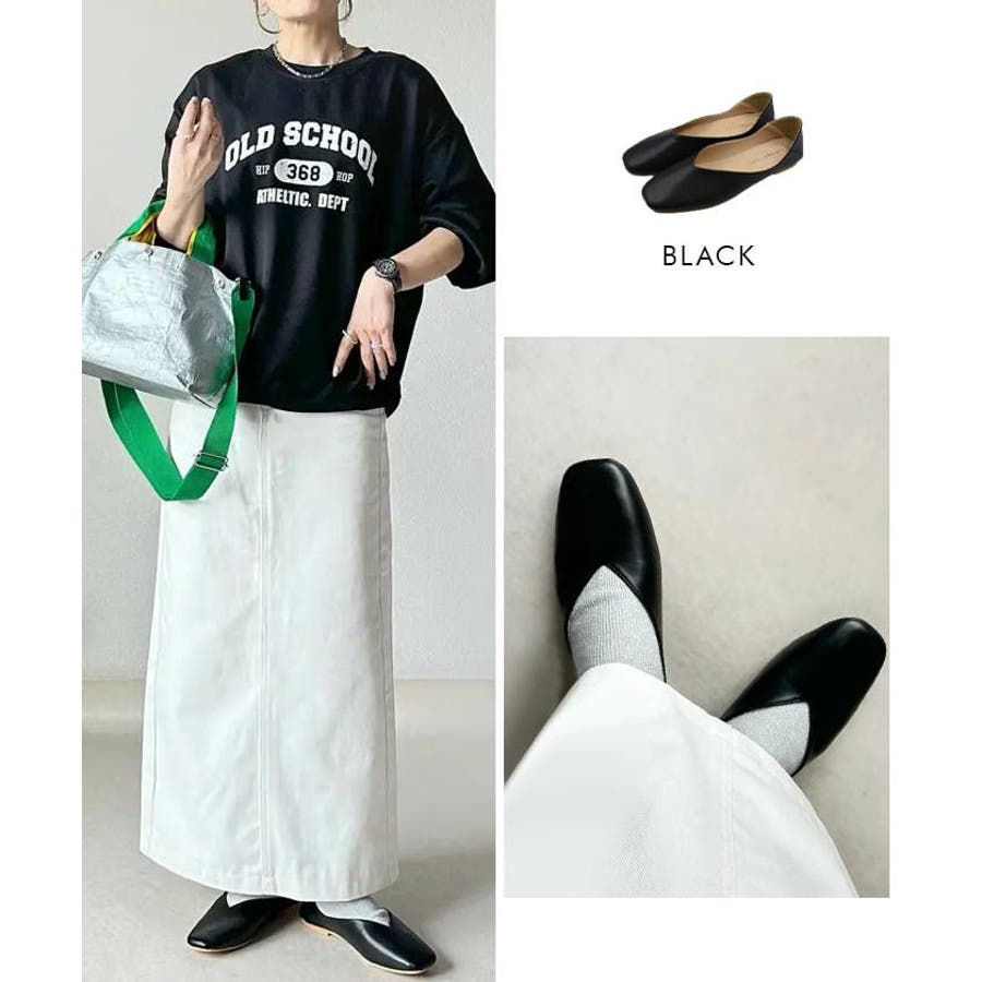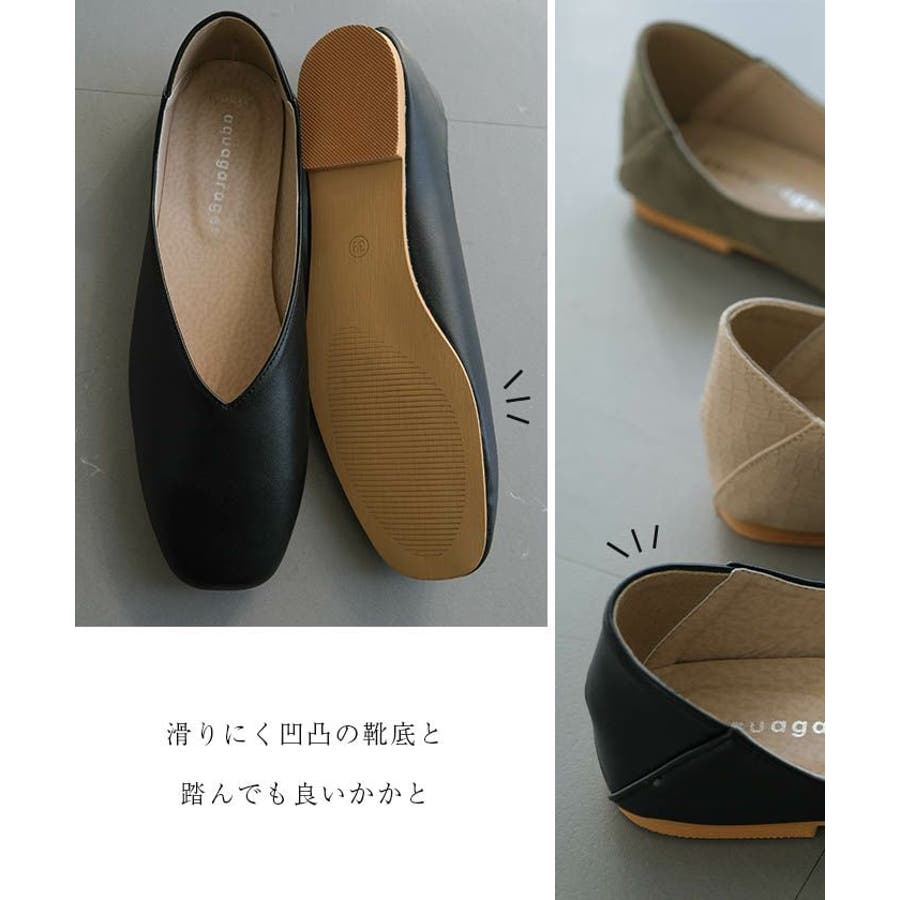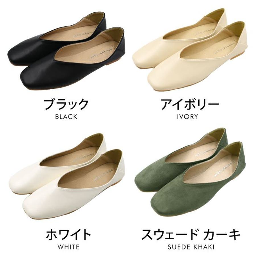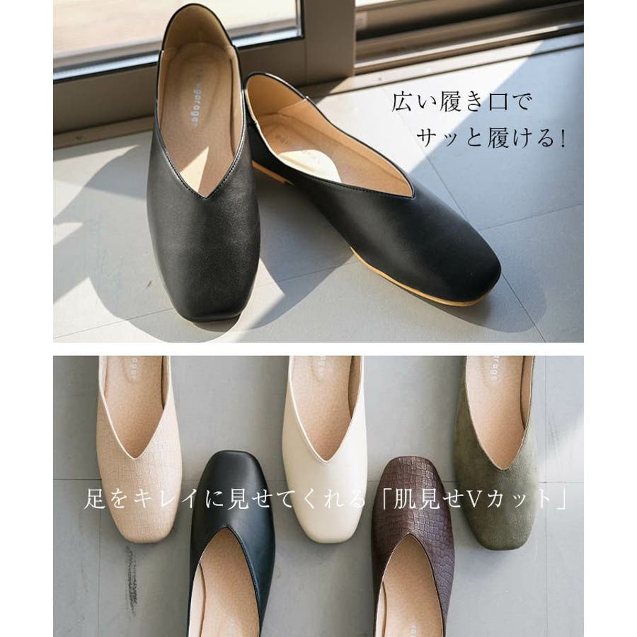 さっと履けておしゃれに決まる!Vカットスクエアトゥフラットシューズ