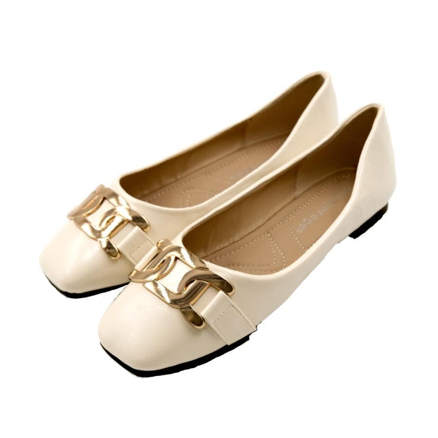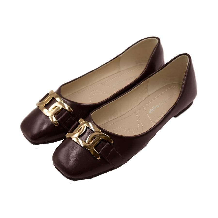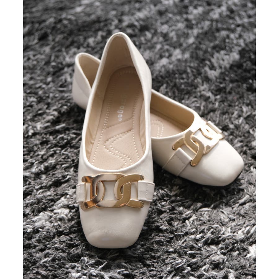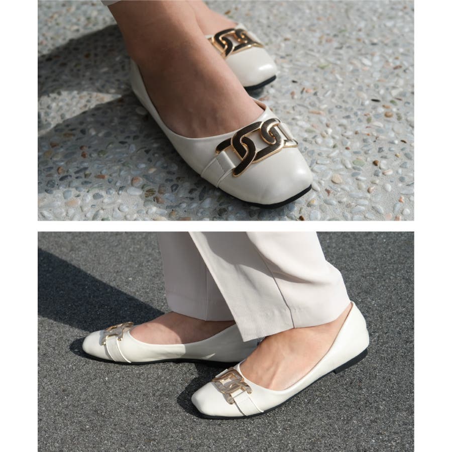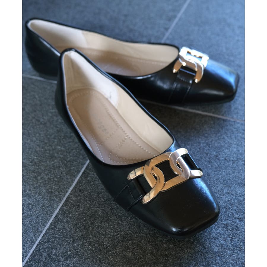 歩きやすさと美しさを兼ね備えたビット付きローヒールパンプス
