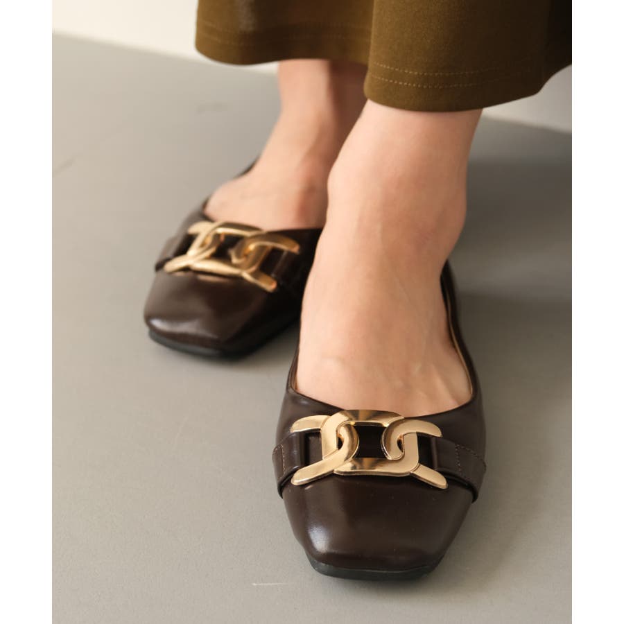 歩きやすさと美しさを兼ね備えた大人の一足。ビット付きローヒールパンプス