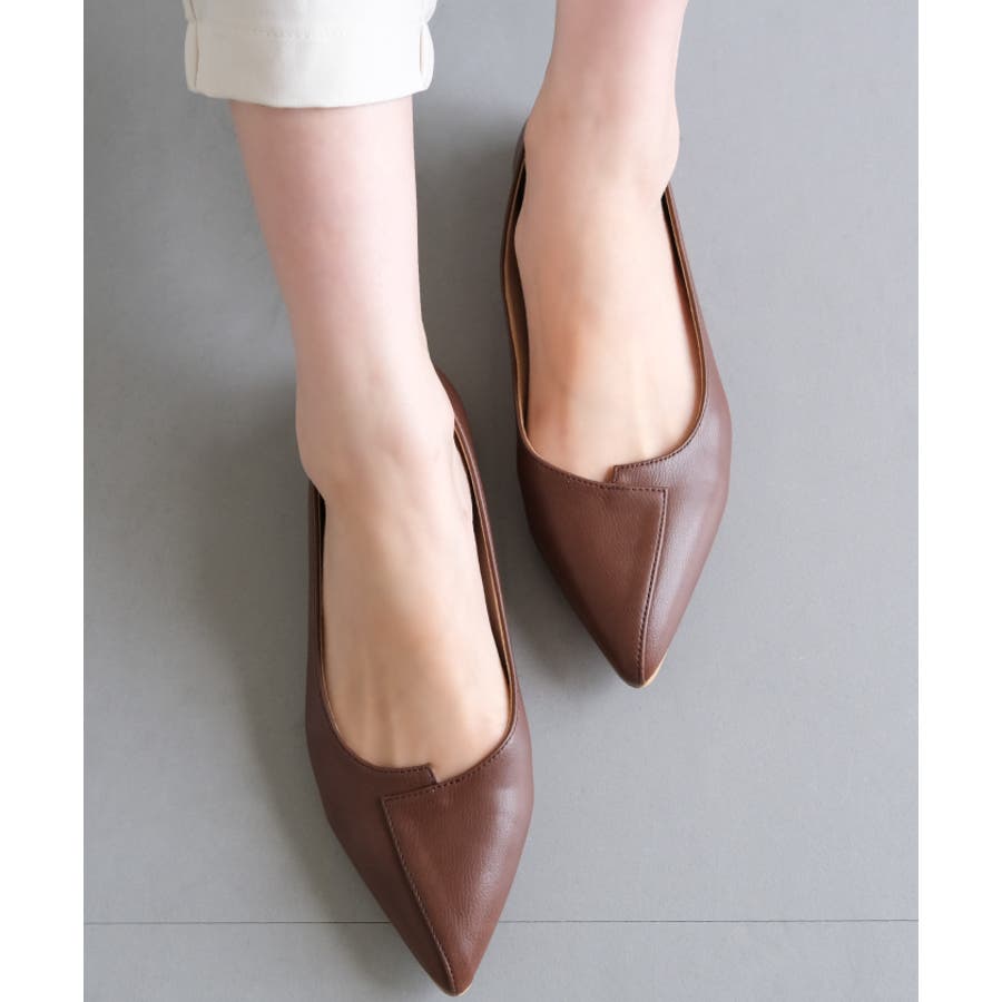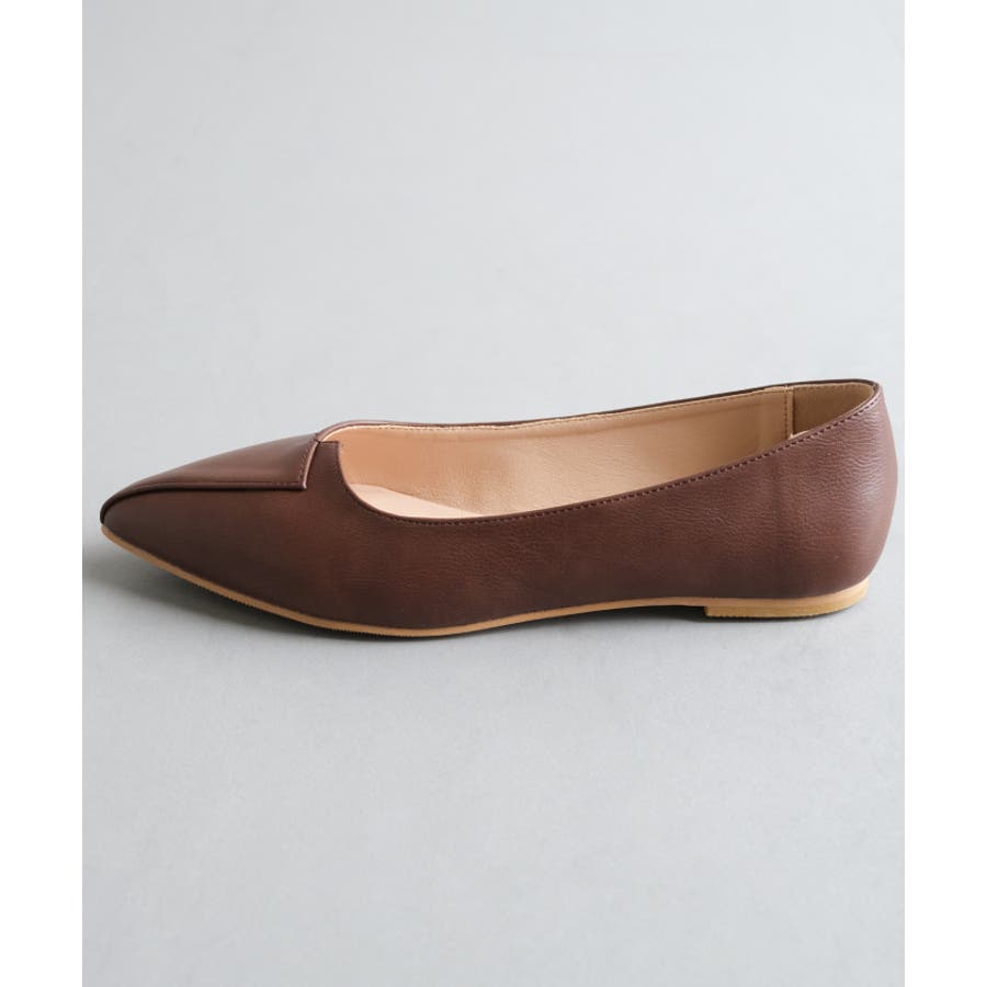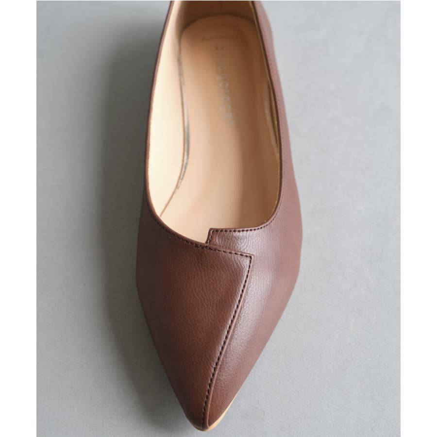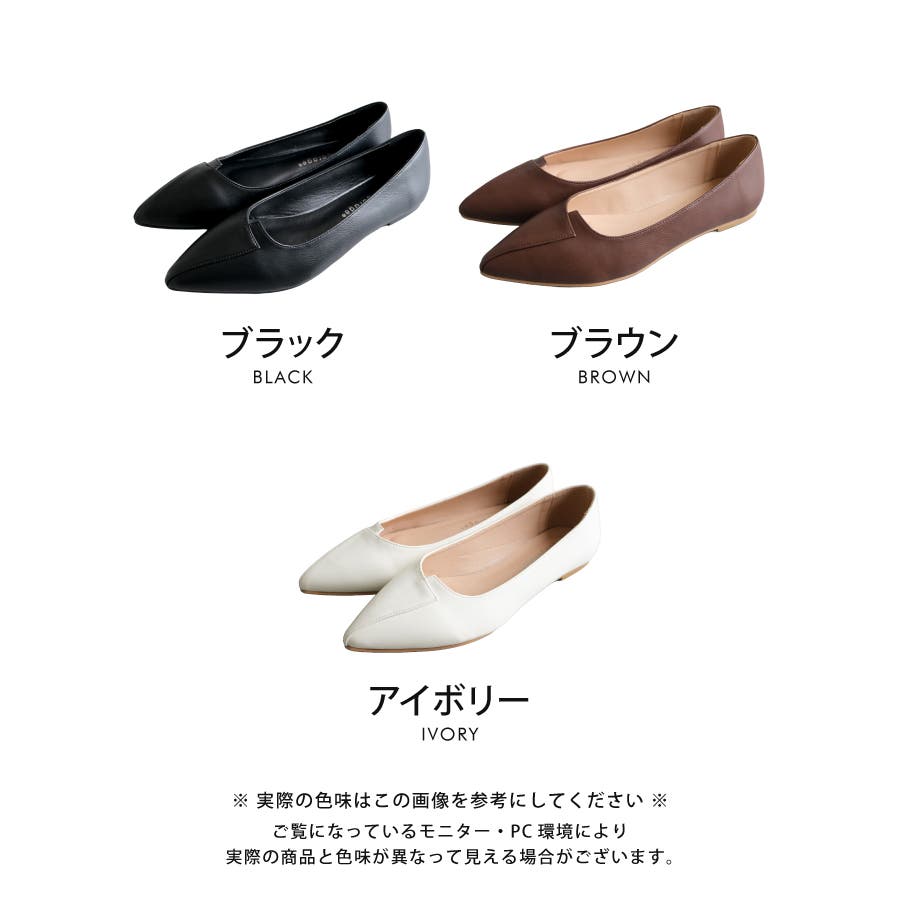 【ブラック】切り替えデザインがポイントのフラットパンプス