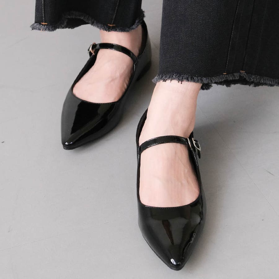 ストラップ付きデザインは、スカートにもパンツにも好相性で、足首をさりげなく引き締めて見せてくれる効果も。