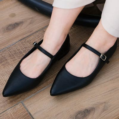 足元にさりげない女らしさを添えてくれる、ストラップ留めのメリージェーンパンプス。