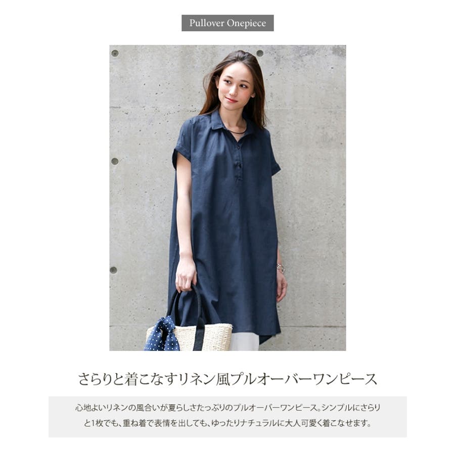 プルオーバー シャツワンピース ワンピース シャツ レディース リネン風 シャツワンピ 半袖 無地 シンプル 膝丈 ひざ 春 夏 ロング丈夏 ロング ミディアム レディース 大人可愛い 夏ワンピース シャツワンピ ホワイト ブラック ベージュ ブラウン ネイビー