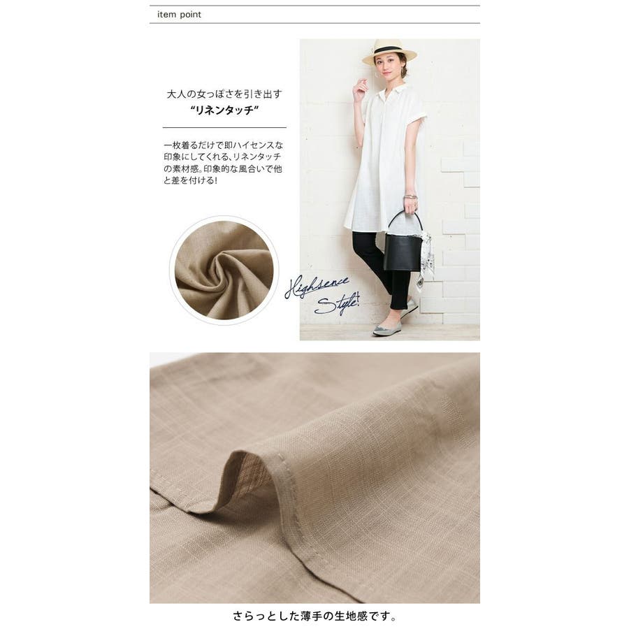 ・リネンタッチの薄手素材で、涼しく着用できます。