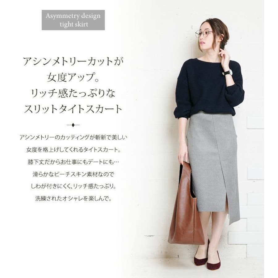 アシンメトリーが女度アップ!リッチ感たっぷりなスリットタイトスカート