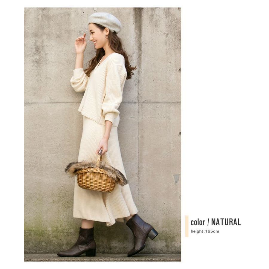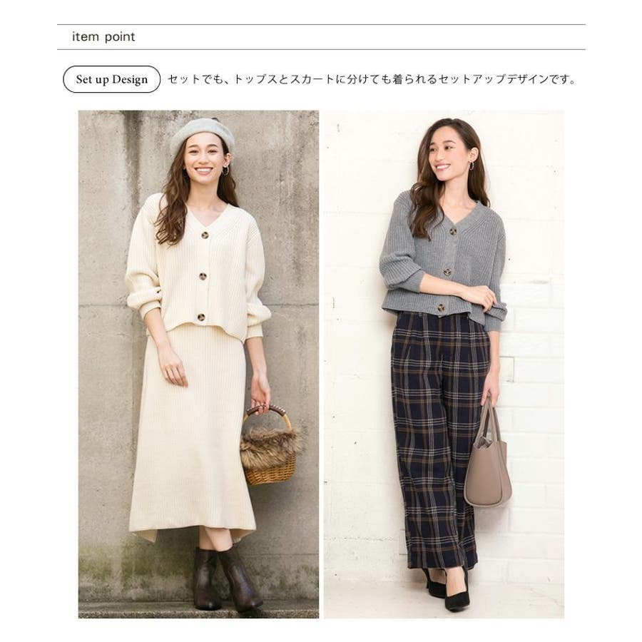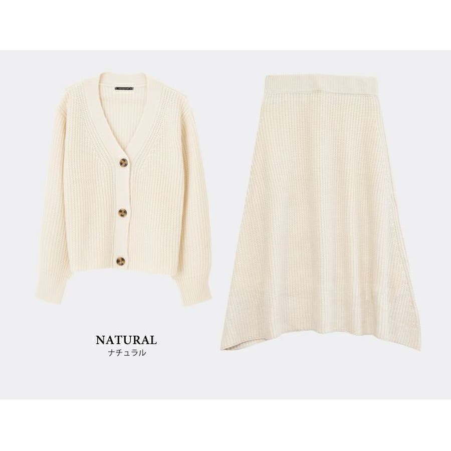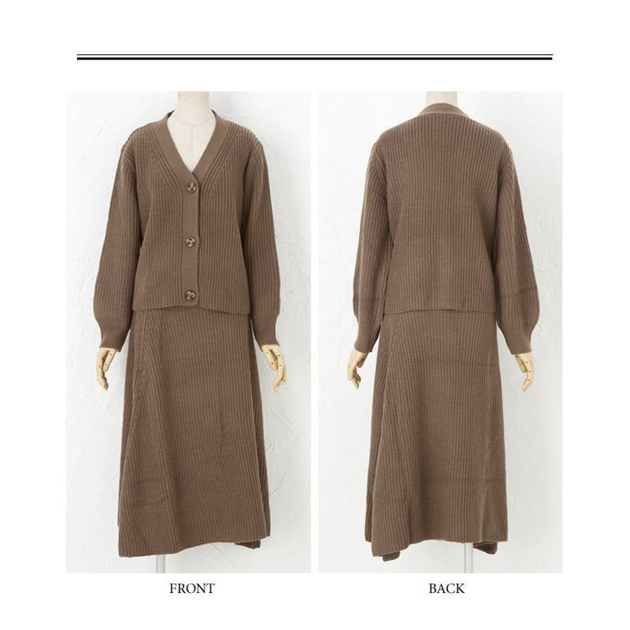 あぜ編みニットアップ レディース セットアップ カーディガン フレアスカート トップス スカート Vネック べっ甲風 ミドルゲージ 伸縮 ウォッシャブル 洗える 秋 冬 M L ブラック ナチュラル グレー モカ