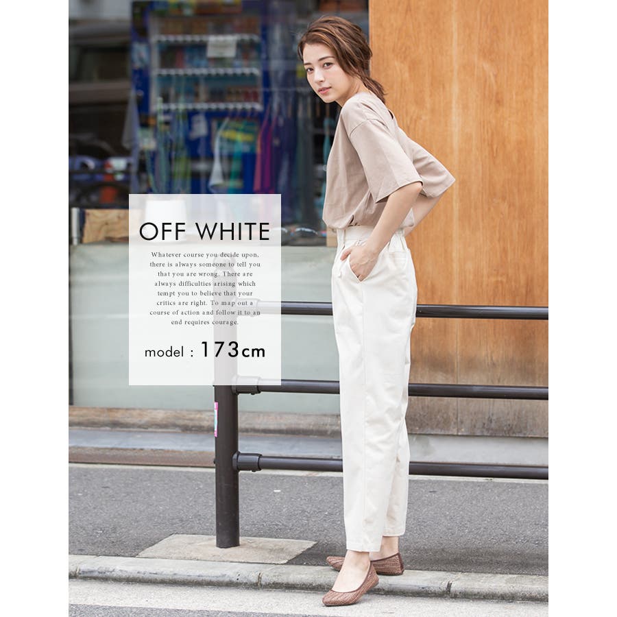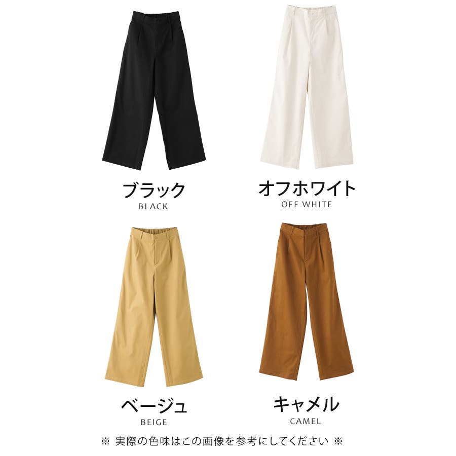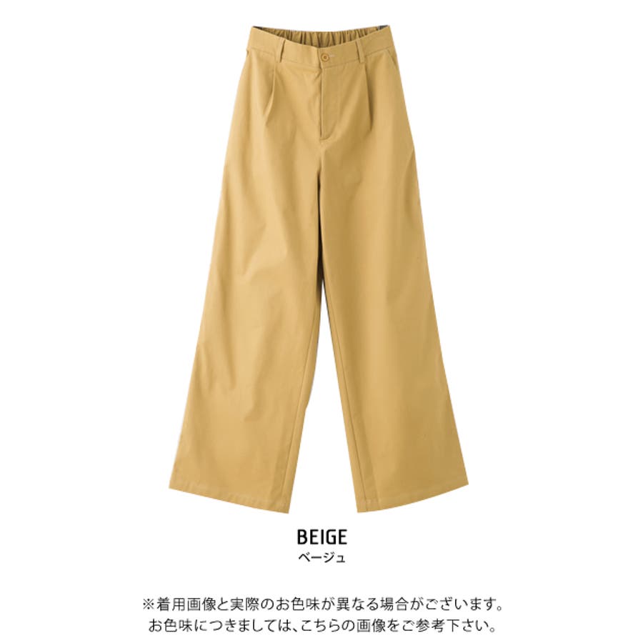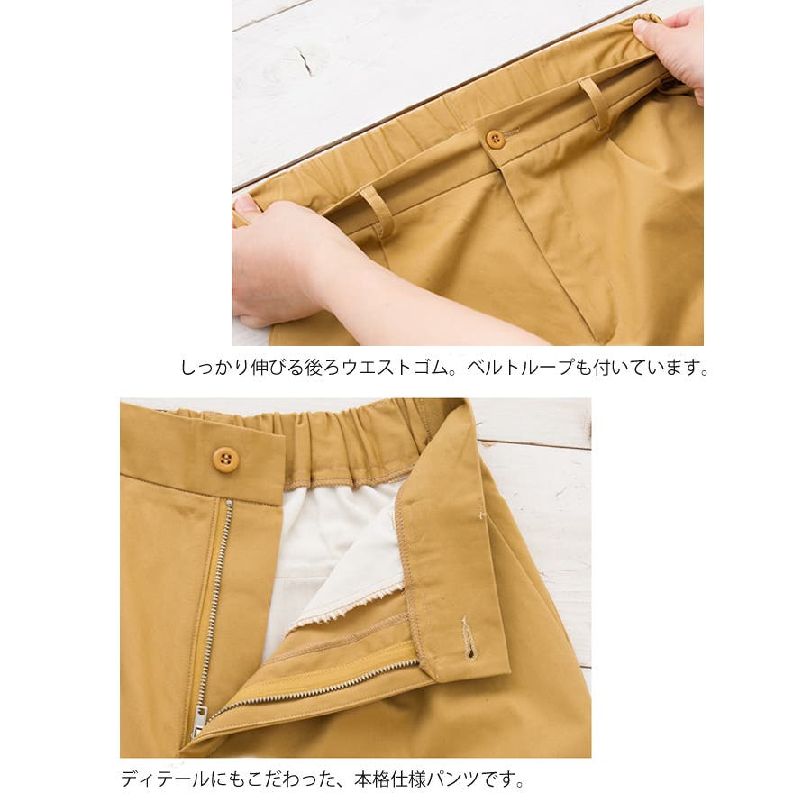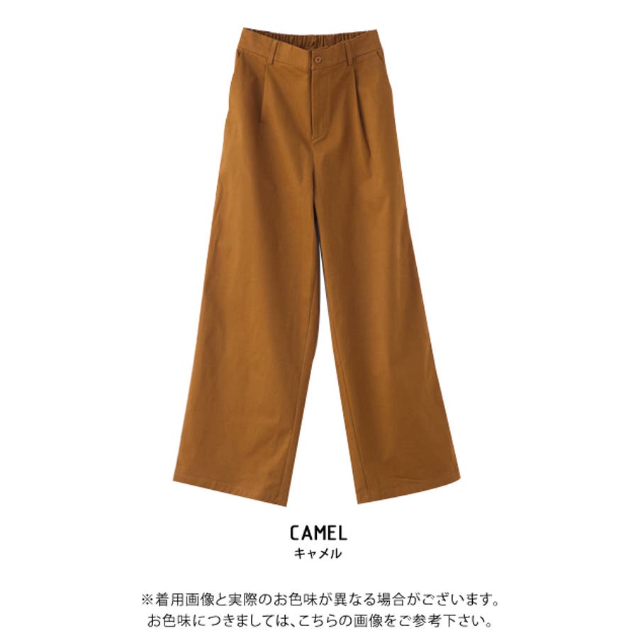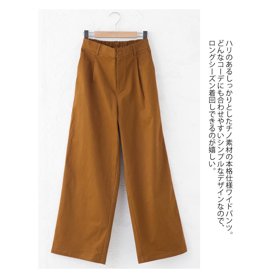・ウエスト後ろゴム仕様でストレスフリーな穿き心地のチノ素材ワイドパンツ。