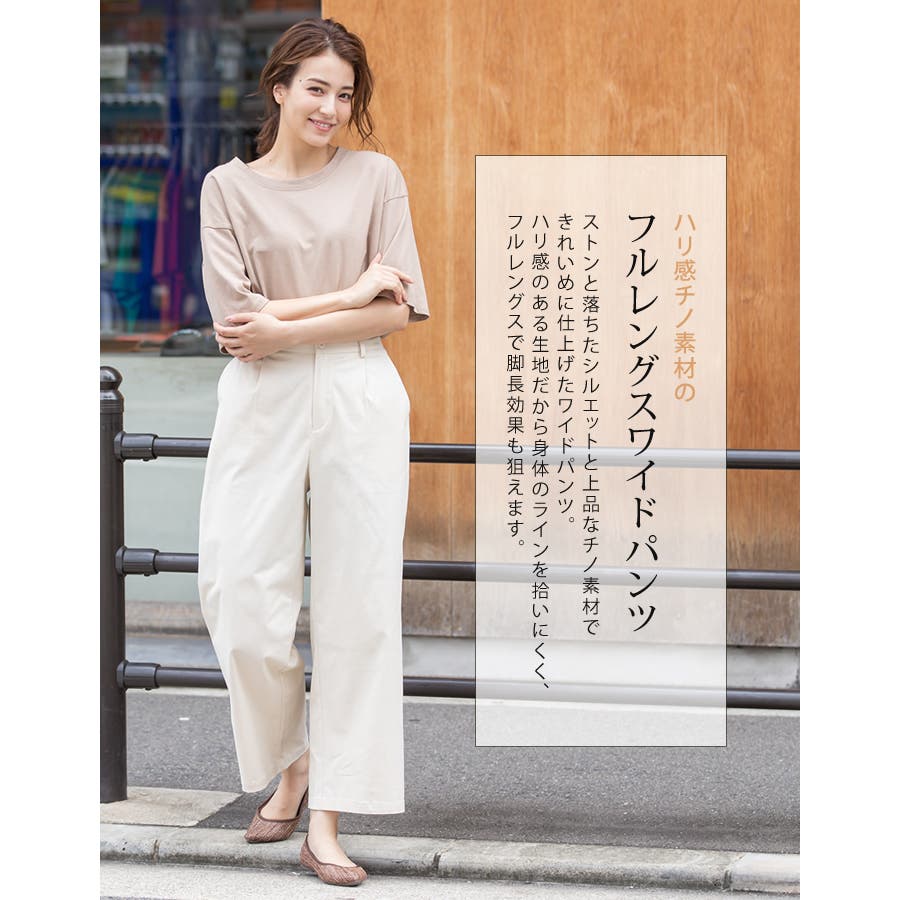シルエットが美しい ハリ感チノ素材のフルレングス チノワイドパンツ