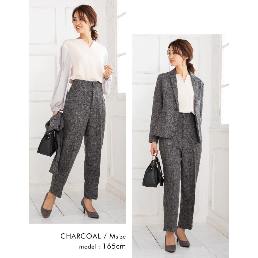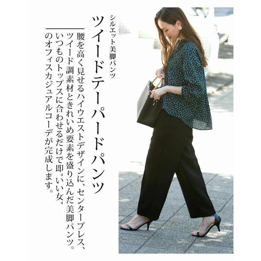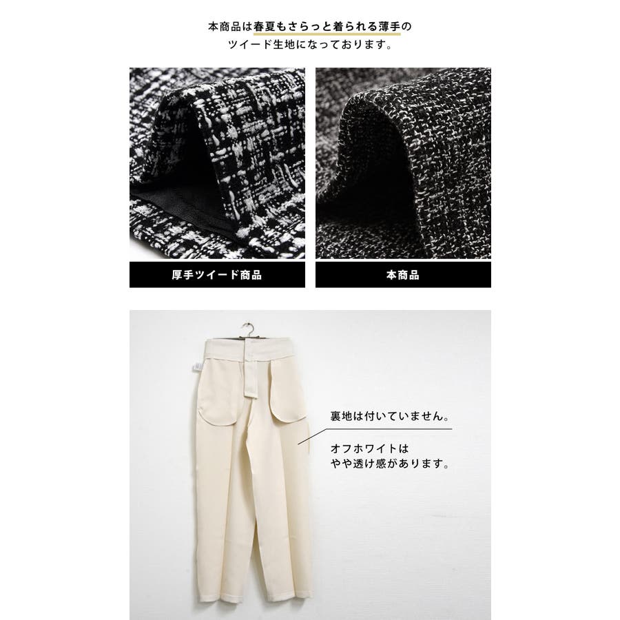 ツイード調素材のハイウエスト美脚テーパードパンツ