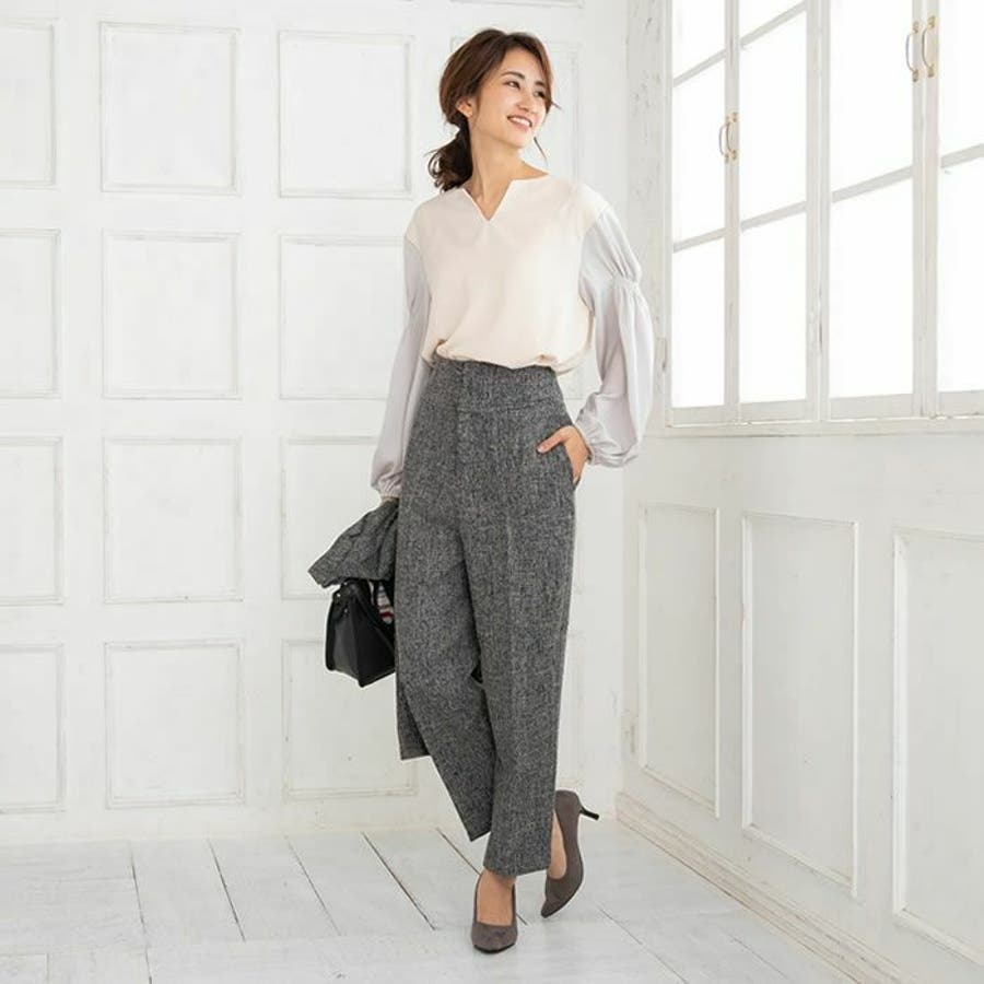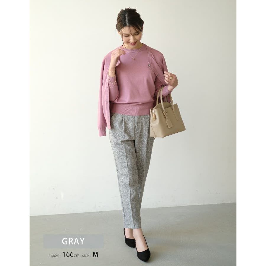 ツイード調素材ときれいめ要素を盛り込んだ美脚パンツ。